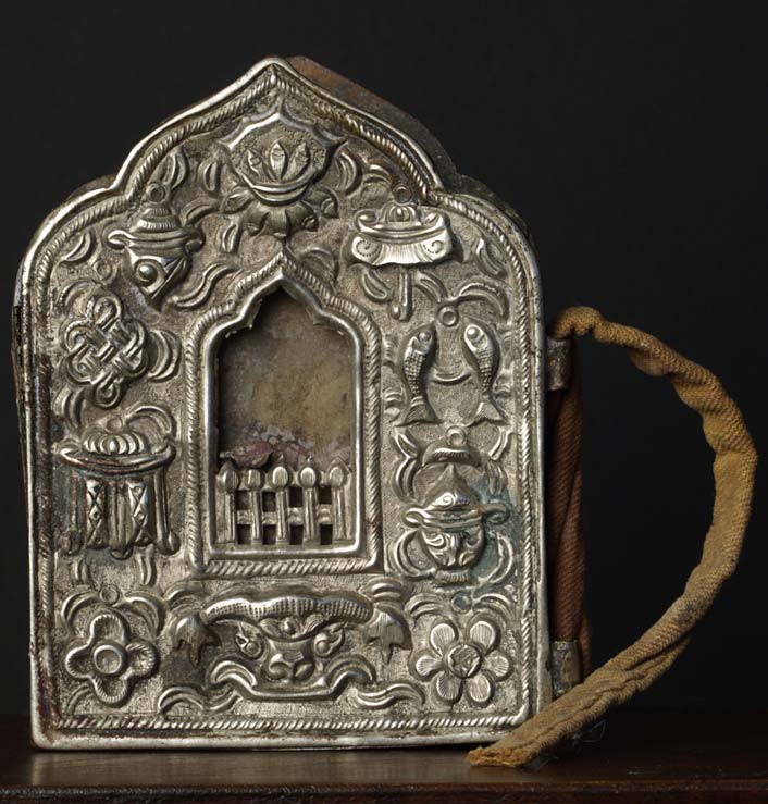 Old Tibetan or Mongolian Gau- the front is a silver alloy, the back copper. I haven't opened it- some funky old stuff iside.