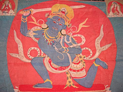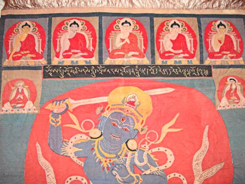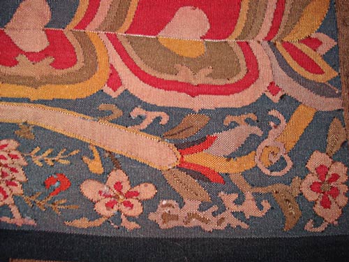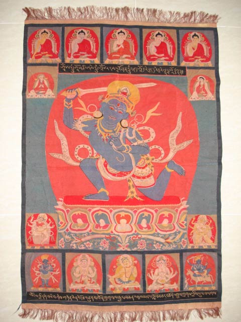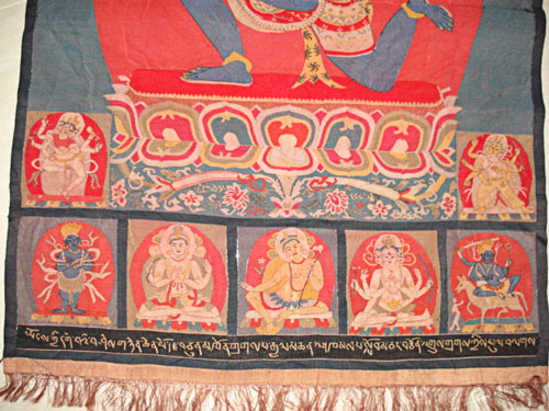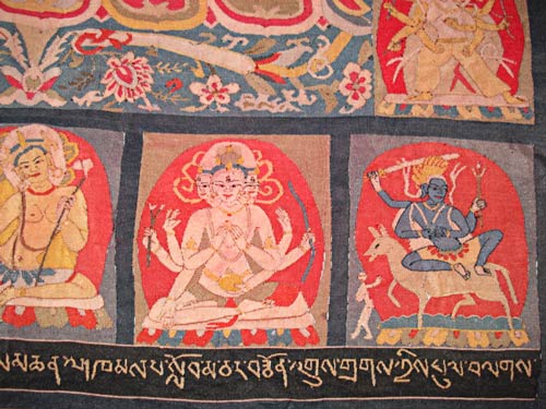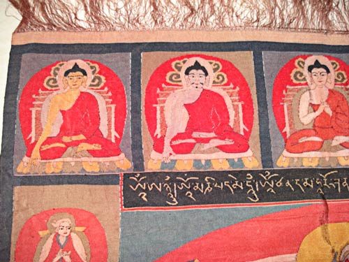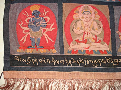 Rare 19th C Khossu- The different colors are sewn together in an extremely time consuming process- even the writing on the bottom is meticulously fitted silk. Buddhist examples are quite uncommon. One of this quality, beauty, detail, and condition are highly valued and sought after.