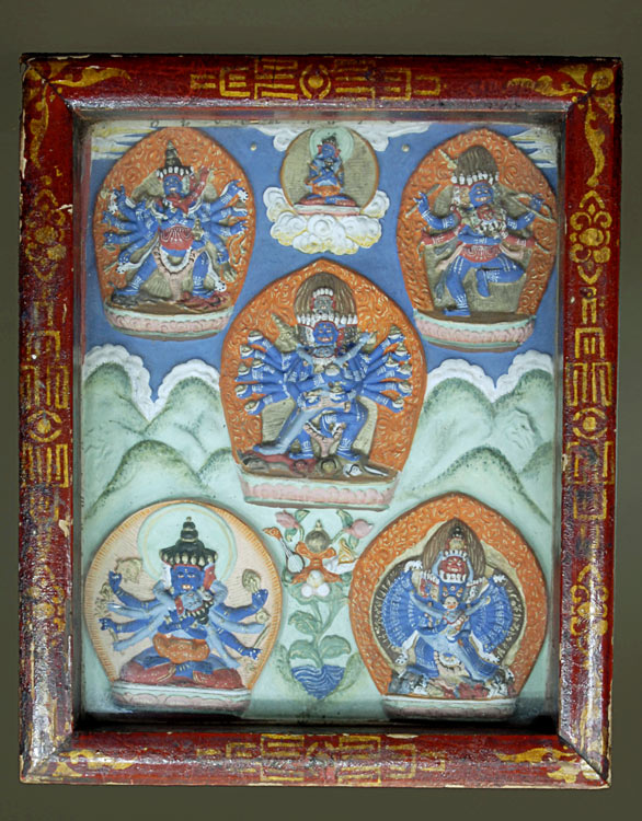 Five Tantric Deities. Extremely large for its type. In outstanding condition- almost certainly spent its life protected in a Gau box. The box is beautifully decorated with traditional Mongolian designs. Qite rare in this size and condition.