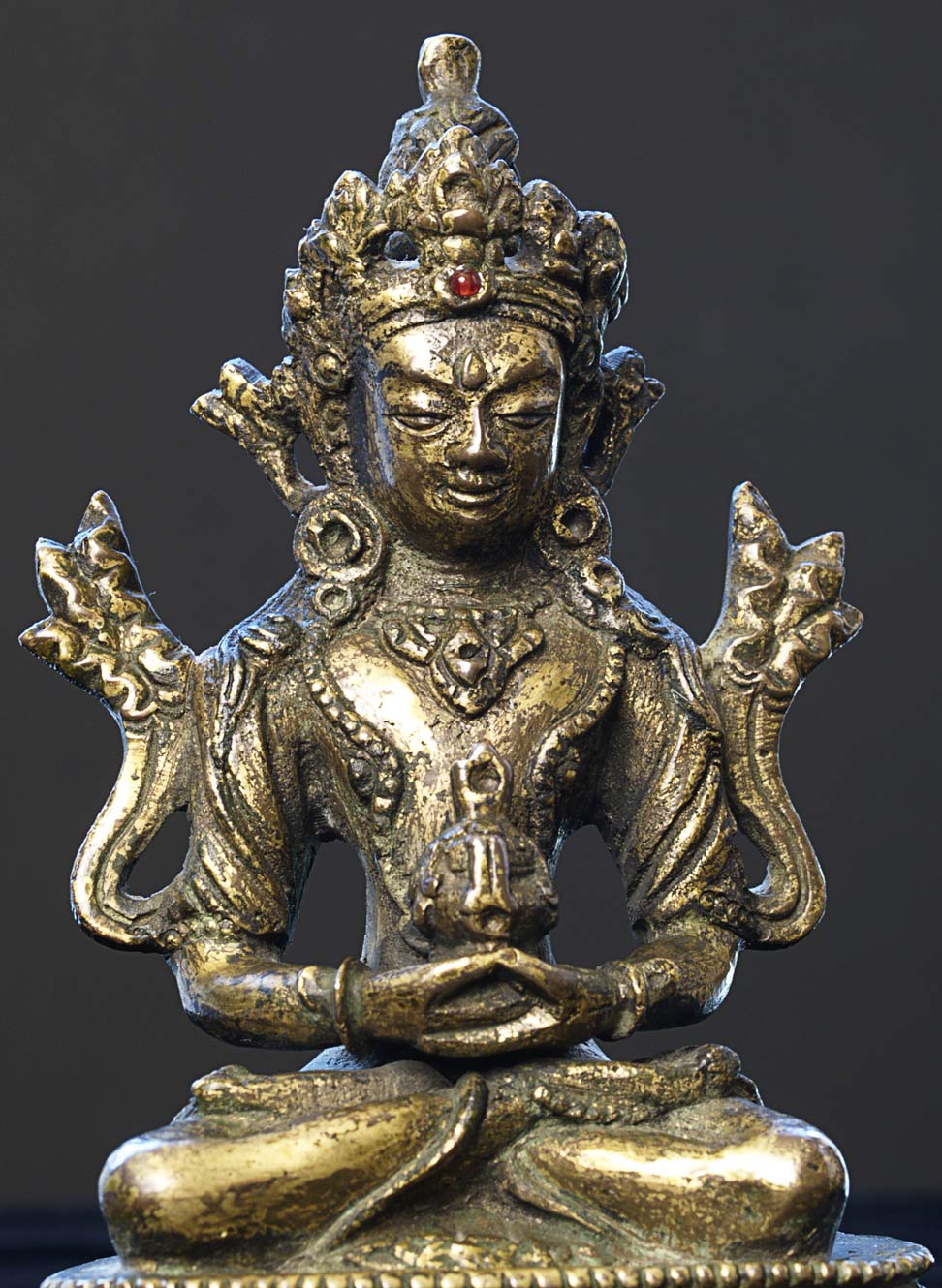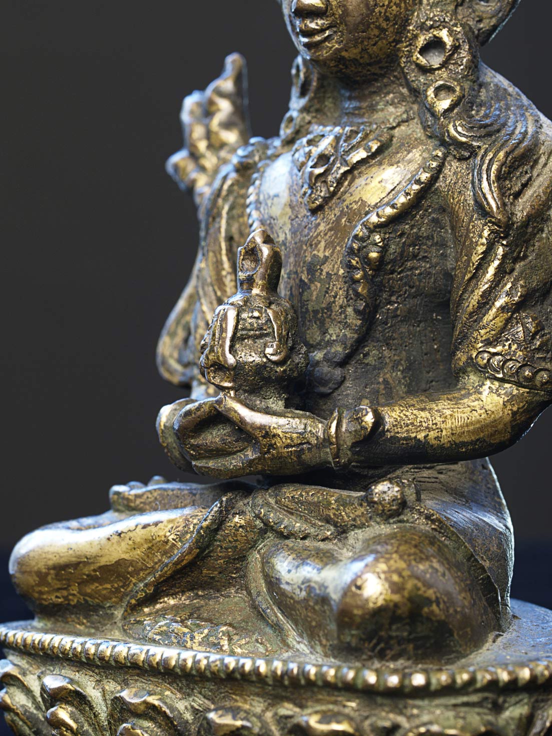 Beautiful 16/17thC Tibetan bronze Bodhisattva. 5.25" tall, 3.5 x2.5" at base