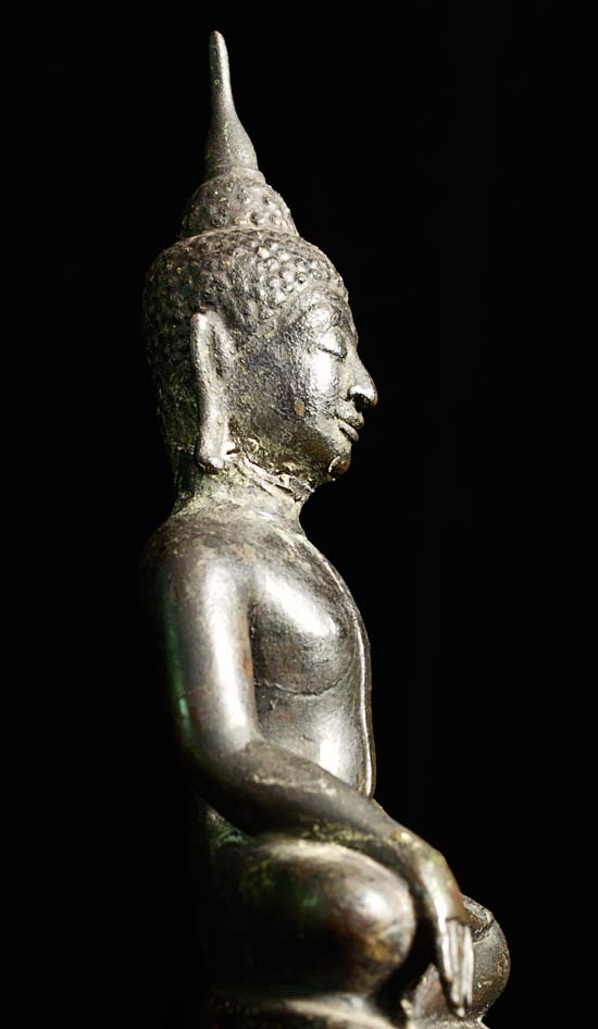 6 3/8" tall seated Buddha. Base is approximately 3 1/2" x 1 3/8". HEad re-attached. Ayuthaya style.