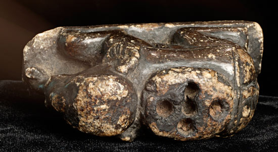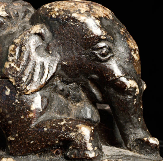 Sweet elephant incense burner. 3.75" x 1.5" at base, 1.75" tall. Significant wear and some loss.