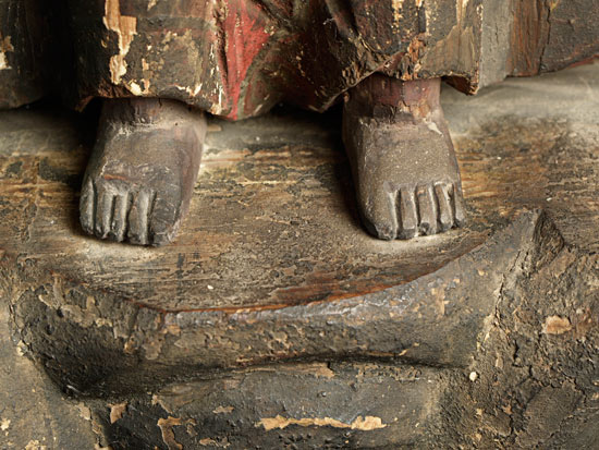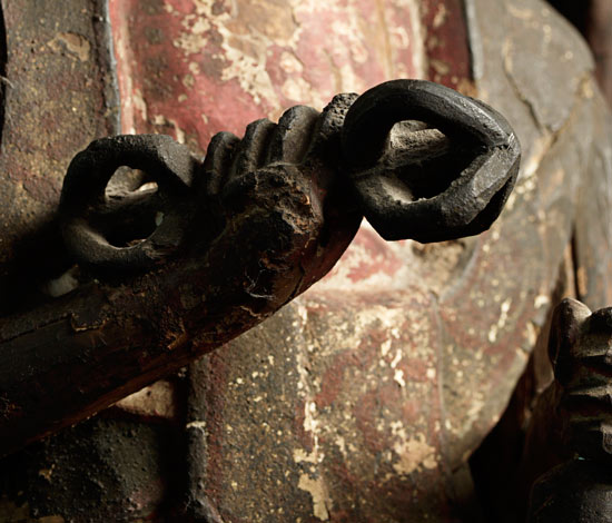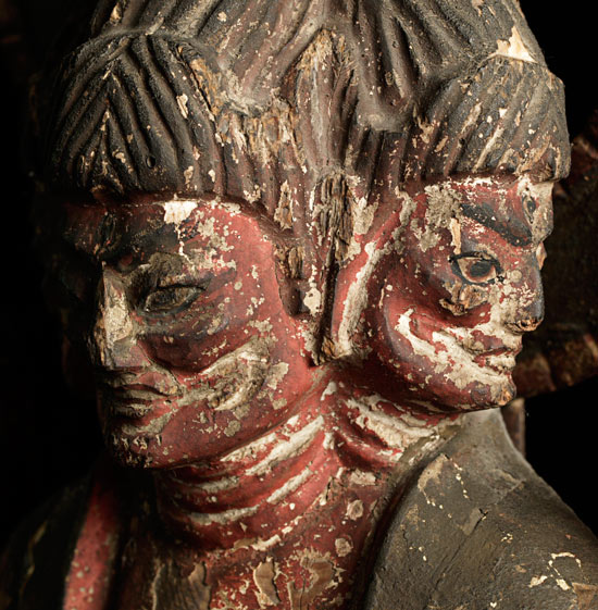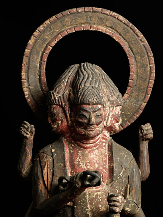 Powerful Japanese 3 face/6 arm deity. Looks to be Edo or older. 18.5" tall, Base measures approximately 9.5" x 5"