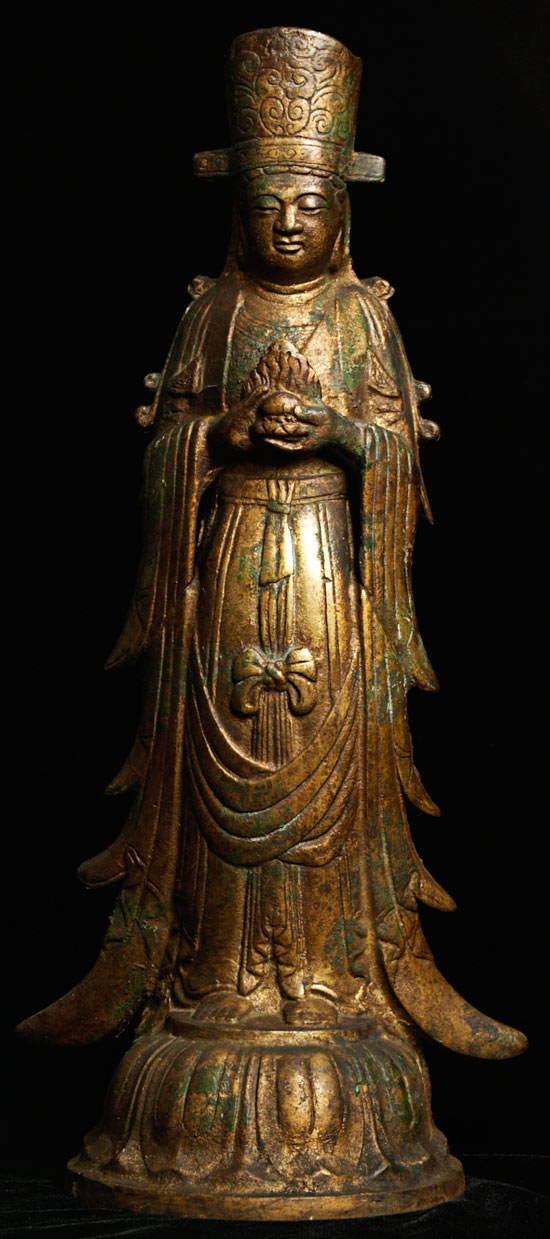 Old Iron Cast metal figurine of the Buddhist goddess Kuan Yin. Probably Korean-could possibly be Japanese.