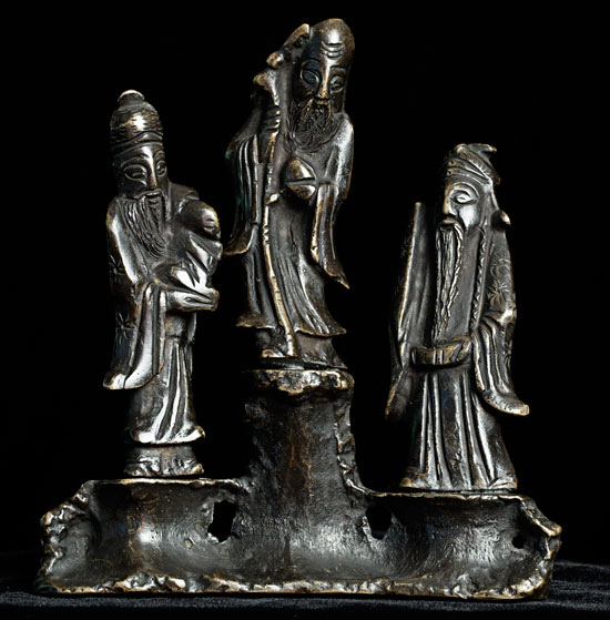 This piece is approximately 6.5" x 1.25" at base and stands 7.5" at highest point. Wonderful overall compsition. Solid cast. Delightful folk art.