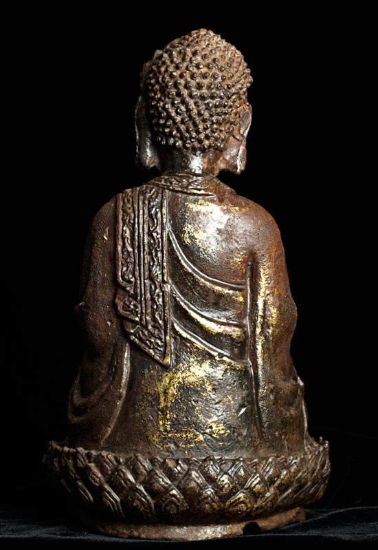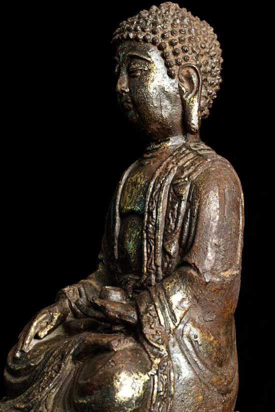 This old iron Chinese Buddha is almost 9.5" tall, 4" x 4.5". Probably 18/19thC.