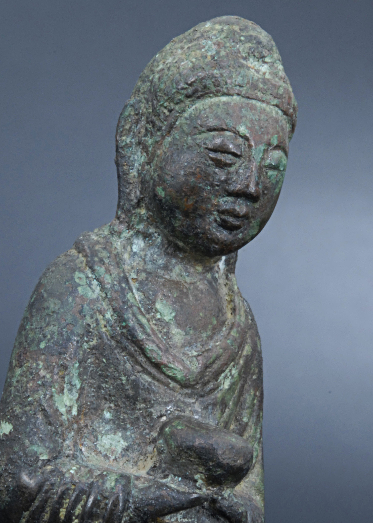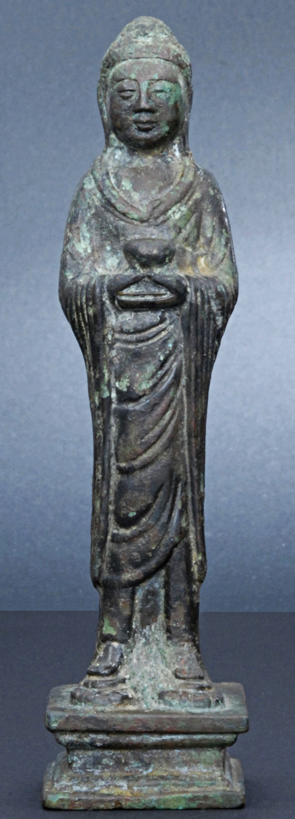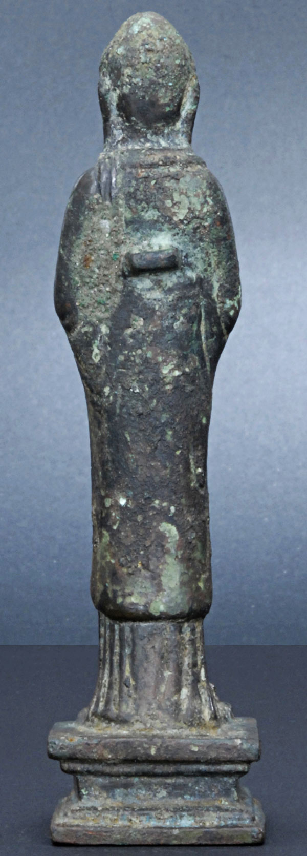 Delightful Liao style standing bronze Buddha. Not a period piece.