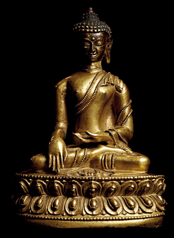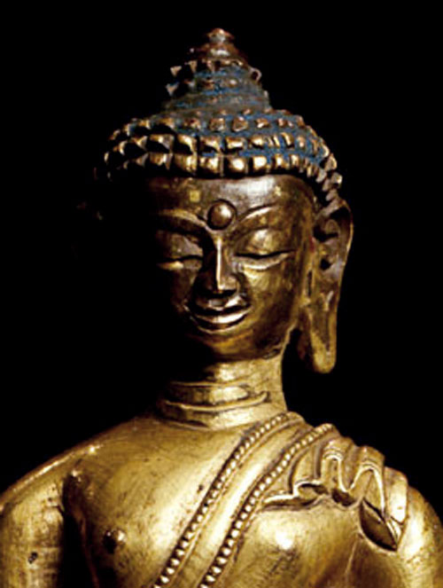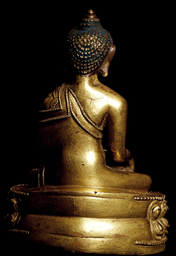 Nice gilded bronze 16-18thC Tibetan Buddha. Wonderfully expressive.