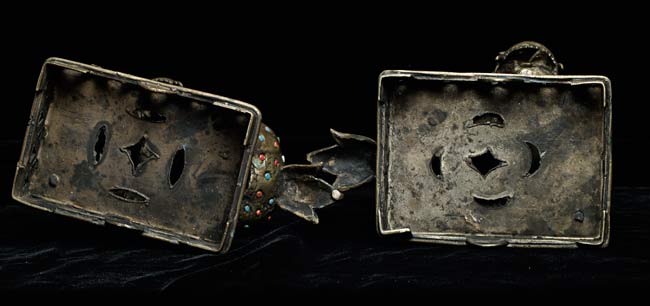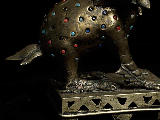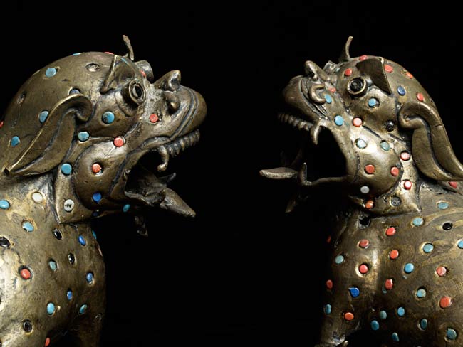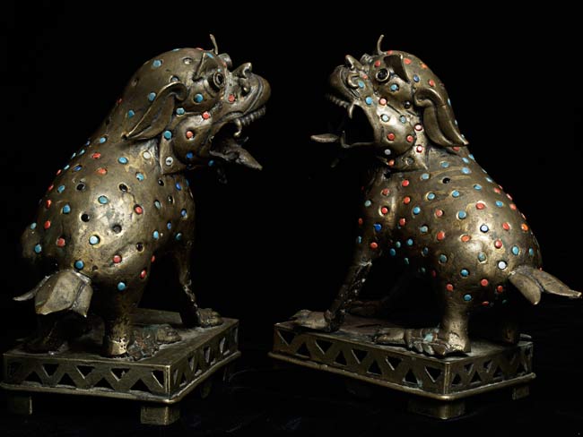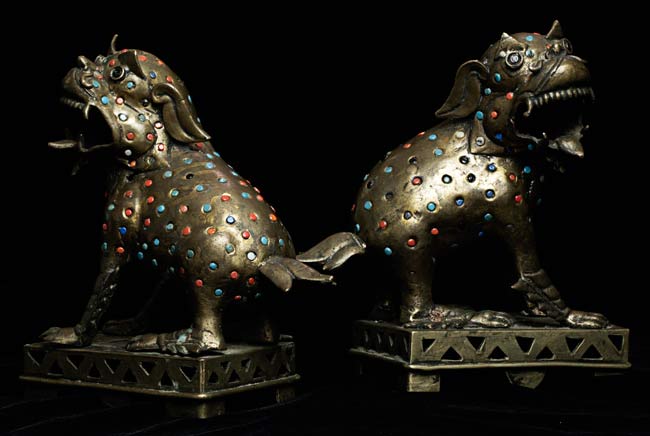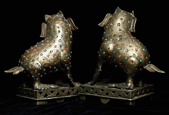 Jeweled Foo dogs stand 3.75" on bases that measure 5" x 3.75"