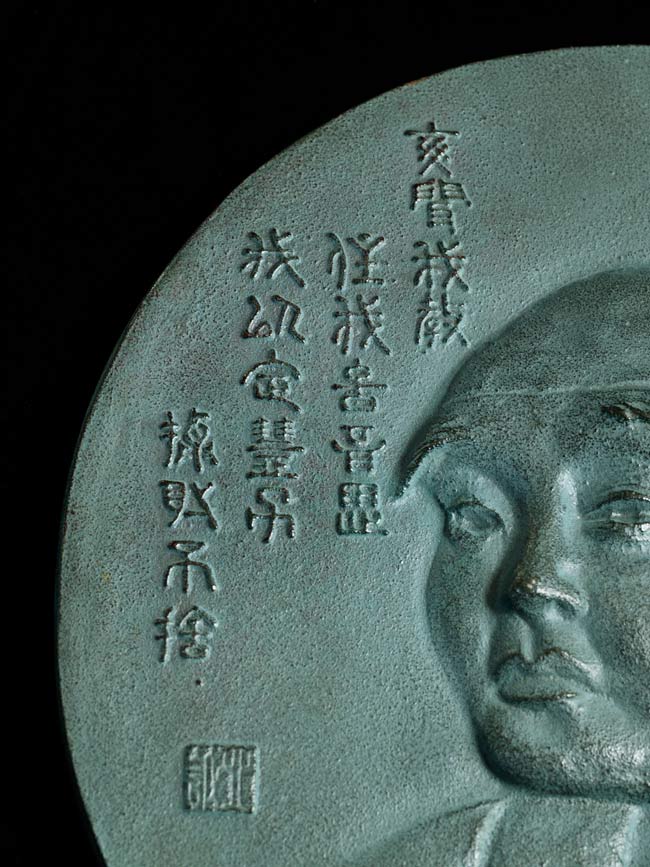 Amazing Old Japanese plaque has a diameter of 11 inches. Heavy.
