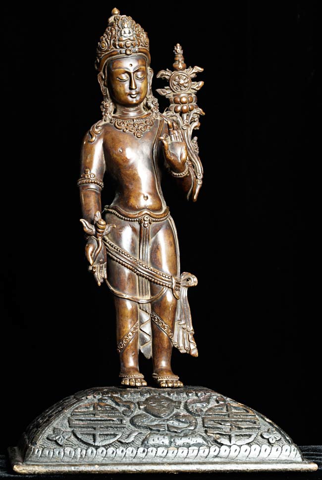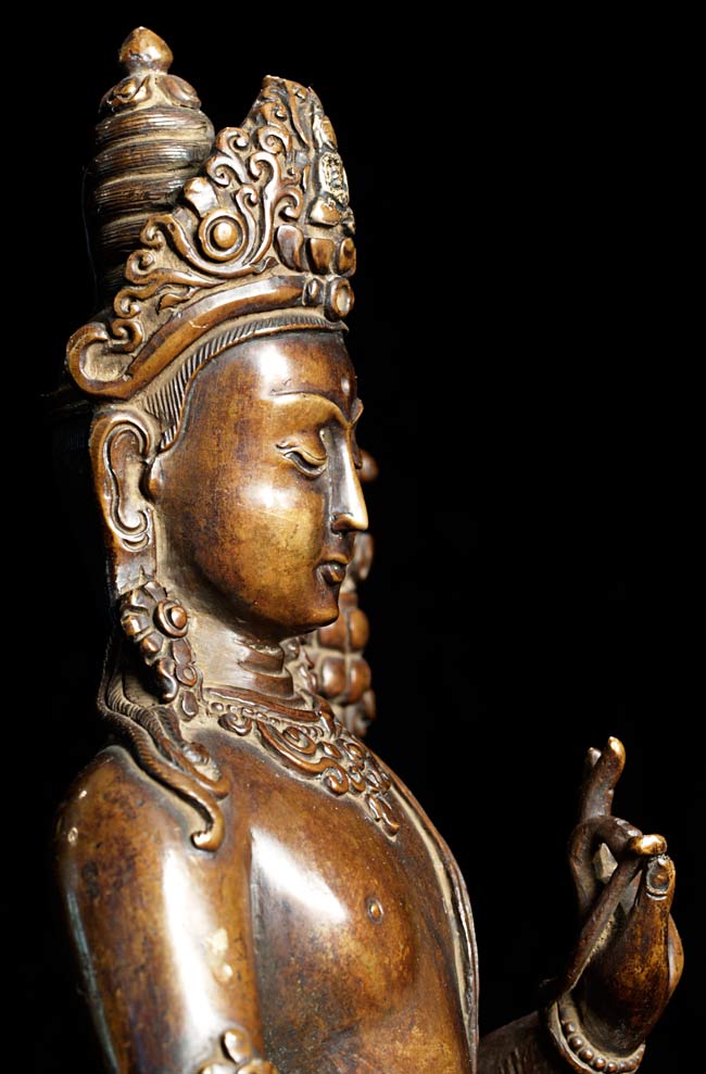 Sublime solid cast Bodhisattva- probably circa 1900. Very fine sculpting, casting, and finishing. Item 2971 is his counterpart. Uncommonly beautiful, with a deep spiritual presence. From a German collection. Purchased by the previous owner at a high end German Auction House.