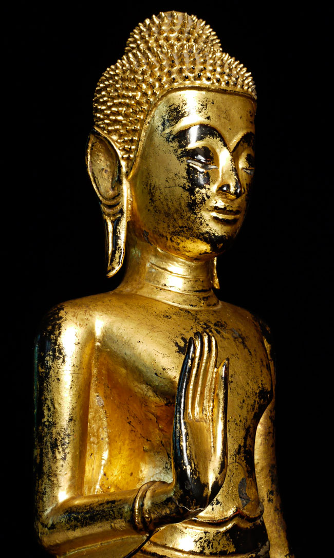 Very fine 17/18thC Ayuthaya style Buddha. Exceptional condition- it is rare to find so much of the original lacquer and gilding. Very good size.