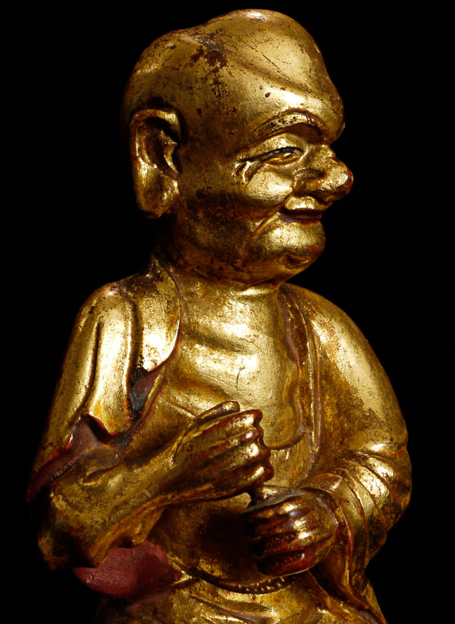 This Chinese Monk or Lohan has great personality and expressiveness. 5" tall, 2" x 2.25" at base