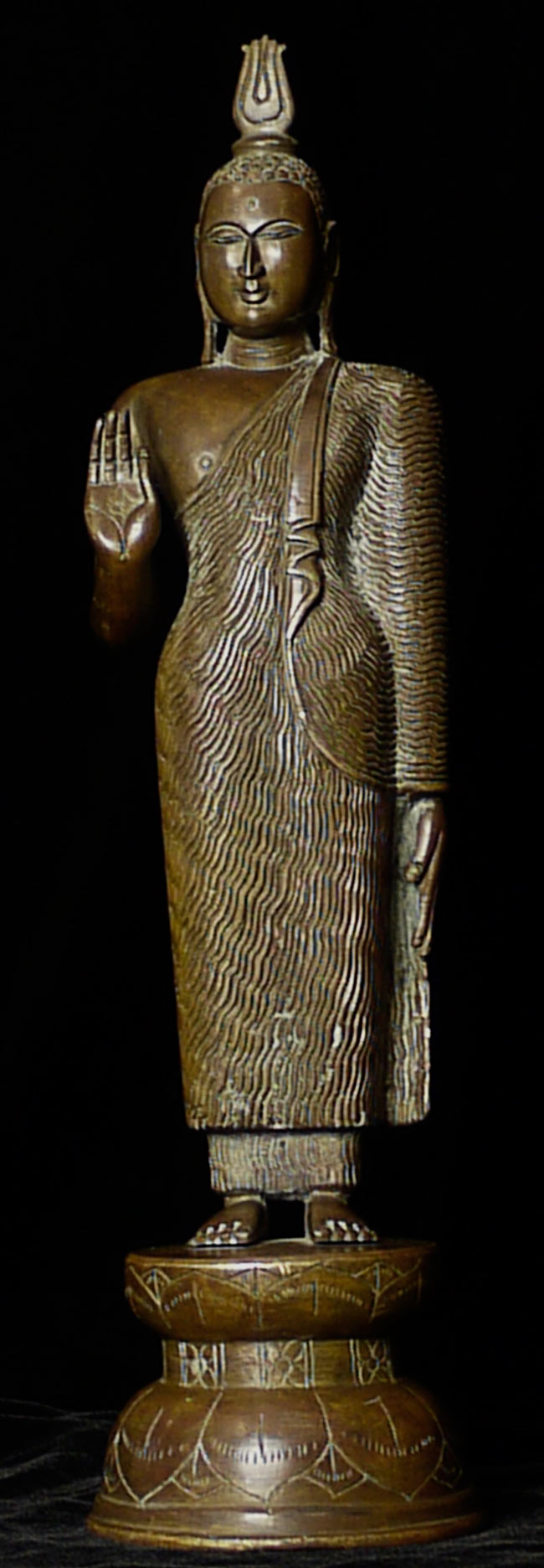 Buddha Sri Lanka Bronze 19/20thC. From an old collection put together in the 1950's A temple Buddha- not a tourist piece.12.5" tall, 3.25" base diameter.