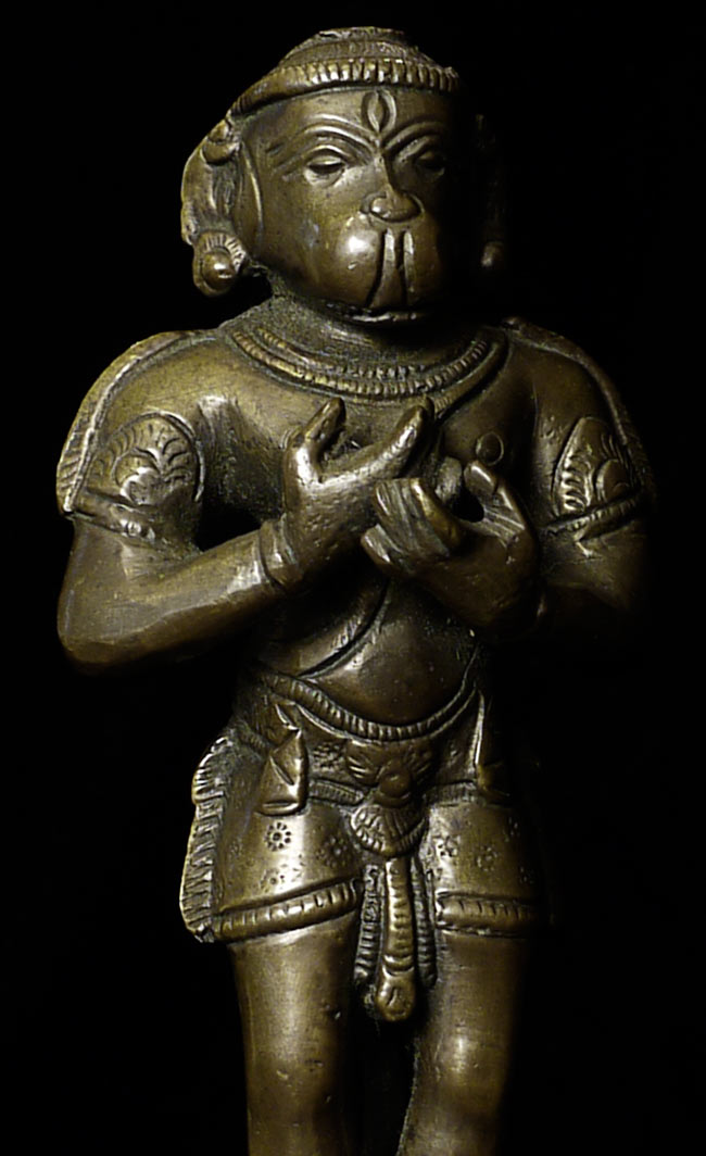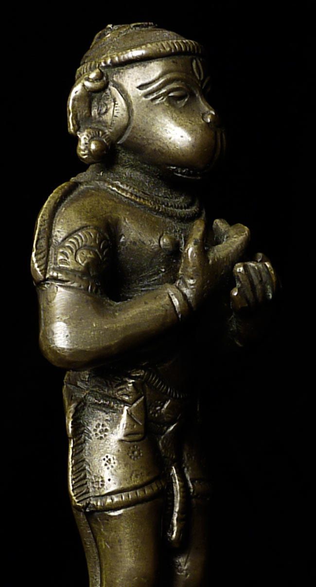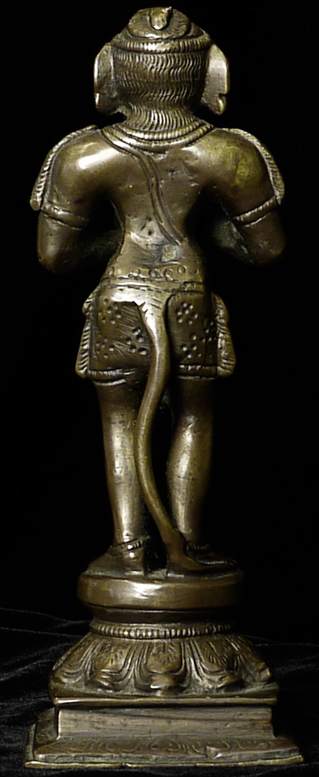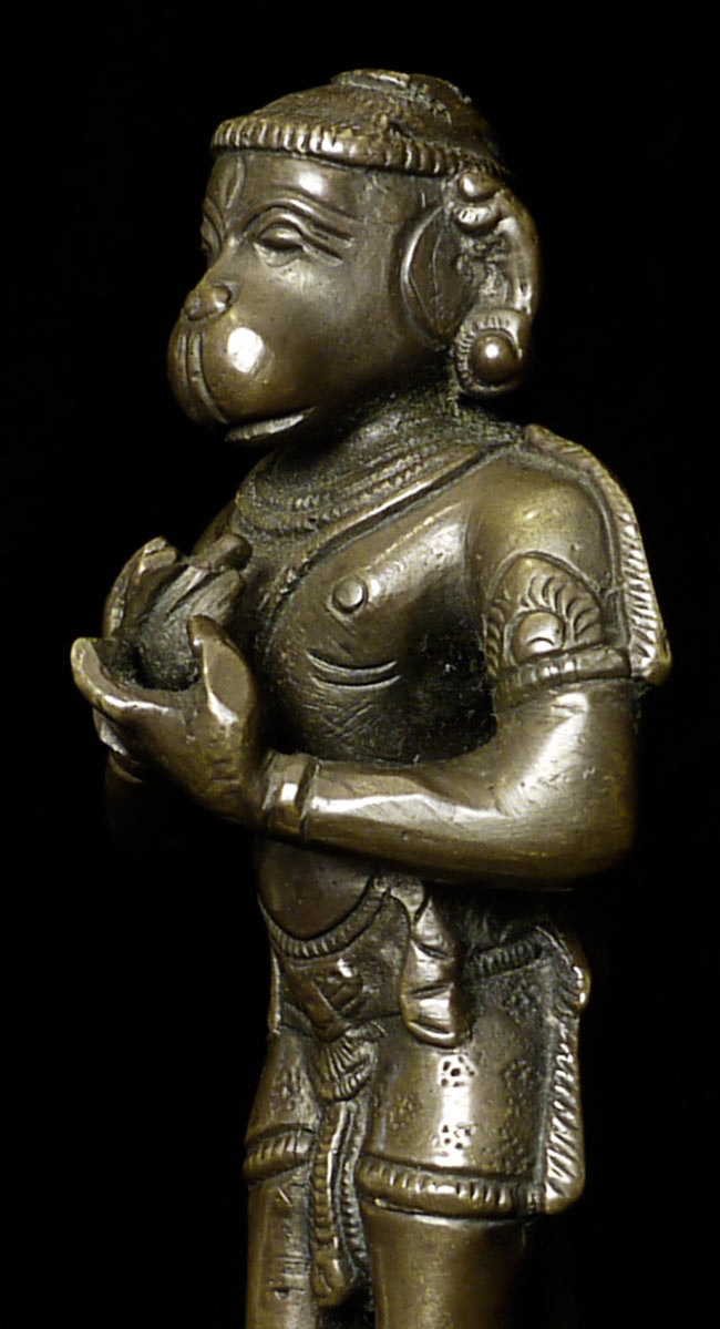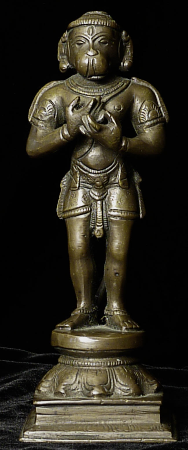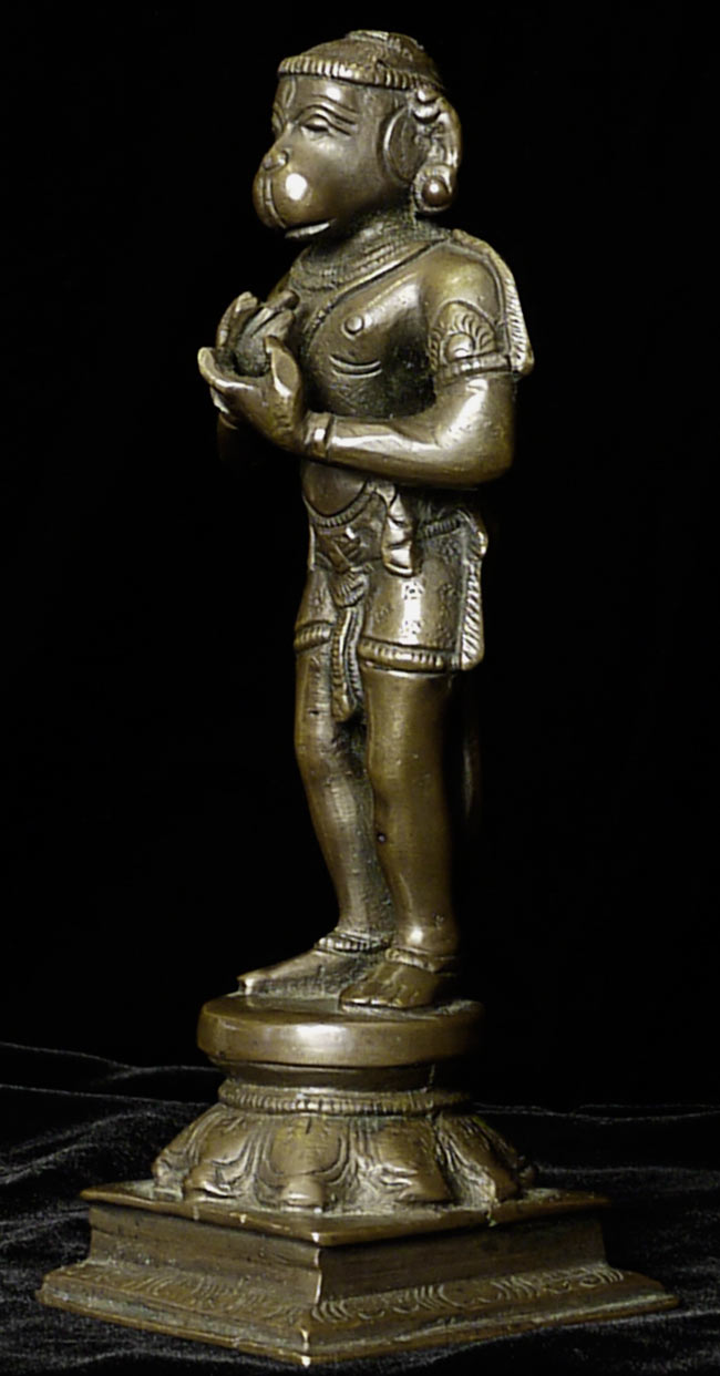 Hanuman stands 7 1/8" tall, on a base that measures 2 5/8" square