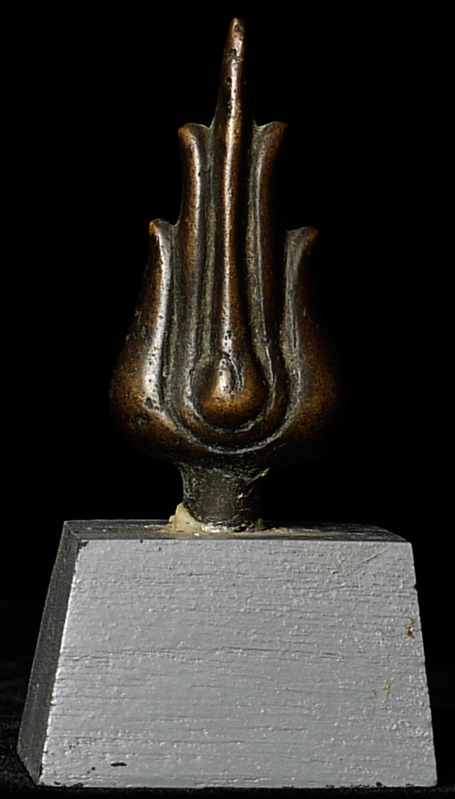 Old Buddha finial. 3.75" tall, wooden base is 1.25" tall, 2" square on bottom