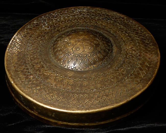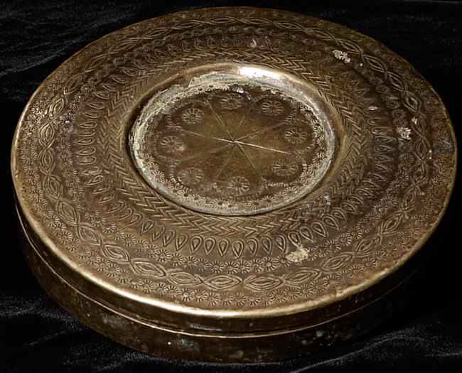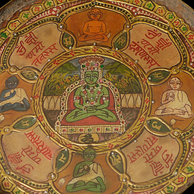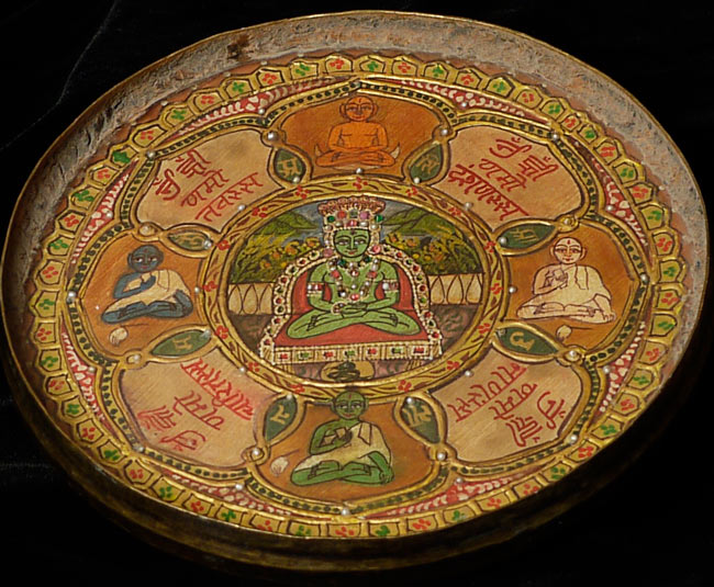 Vintage/old Jain shrine-incredible workmanship & detail -- beautiful! Note the inaid pearls. 6" diameter, 1" deep.
