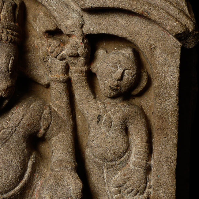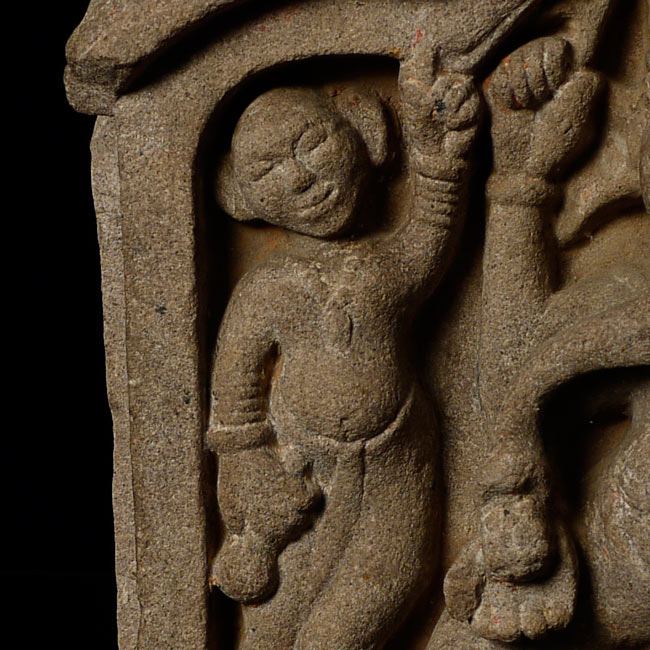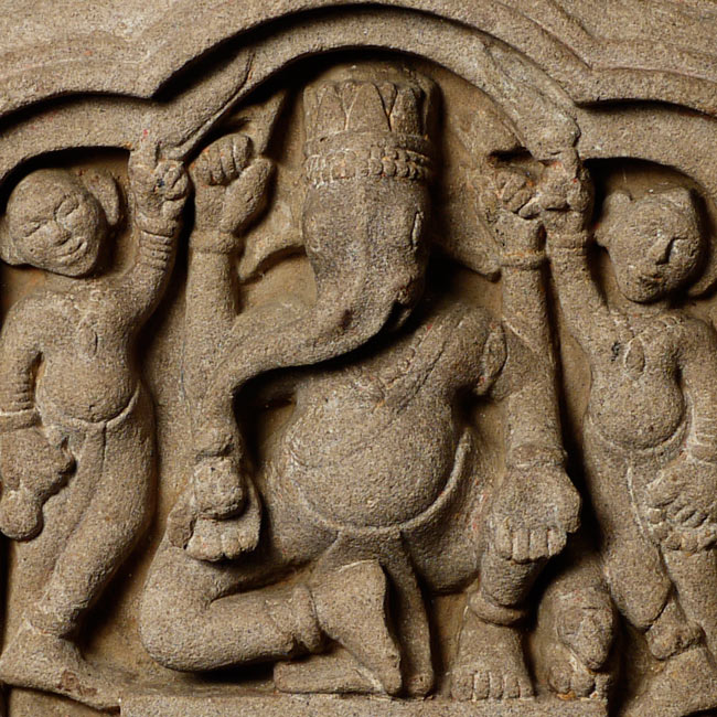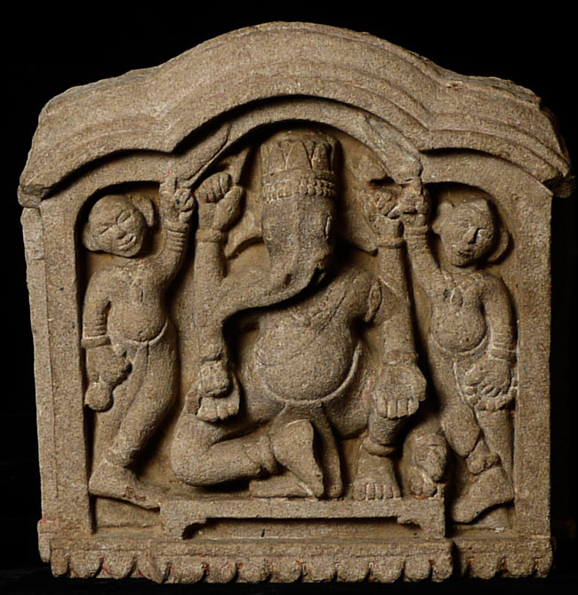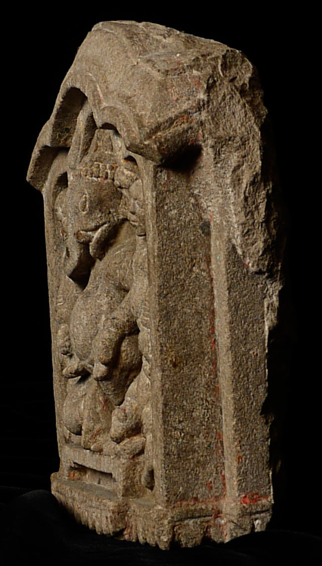 Very fine old and fine ganesh. Remains of original red polychrome in the crevices. Appears to be qite old- I do not know how to date precisely. Measures approximately 11" long, 3.5" deep, 11" high.