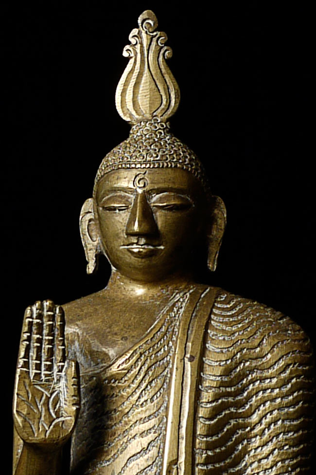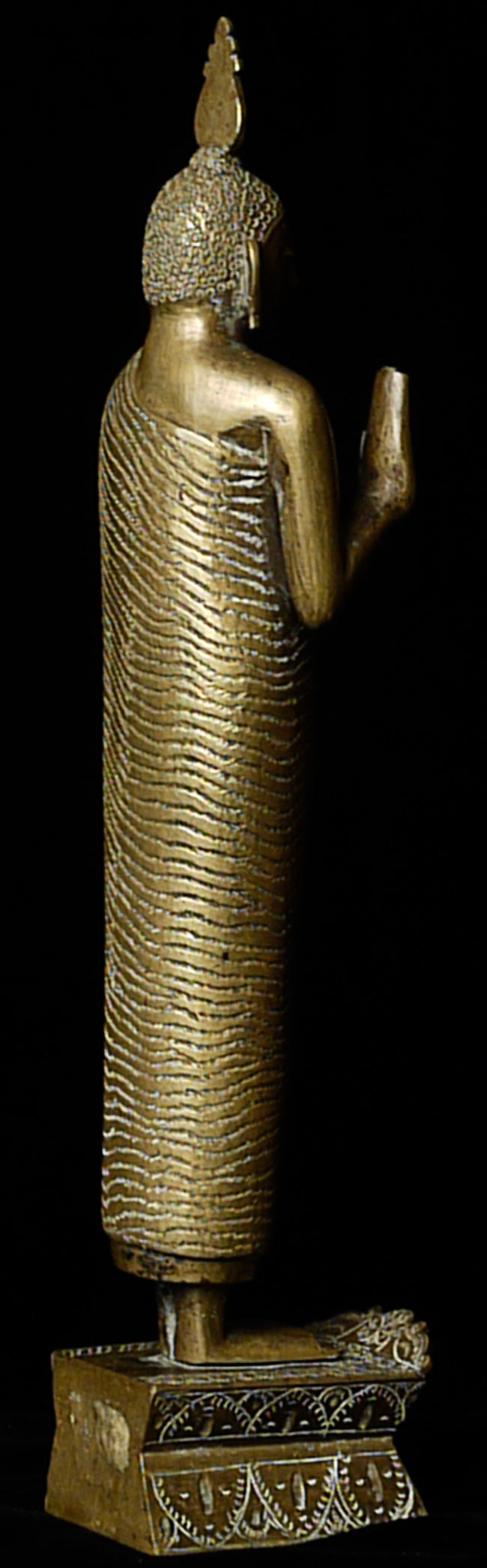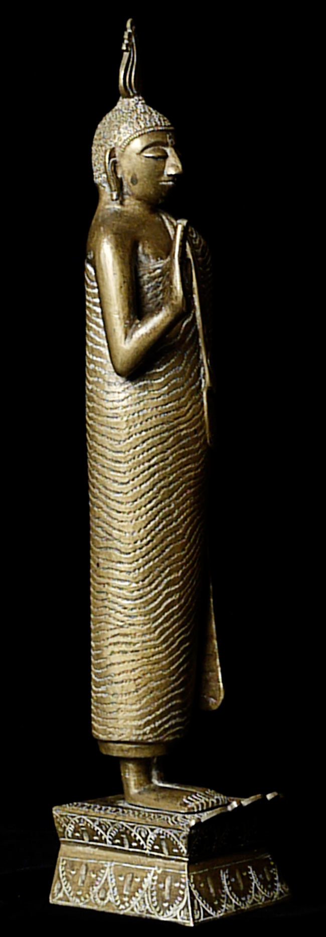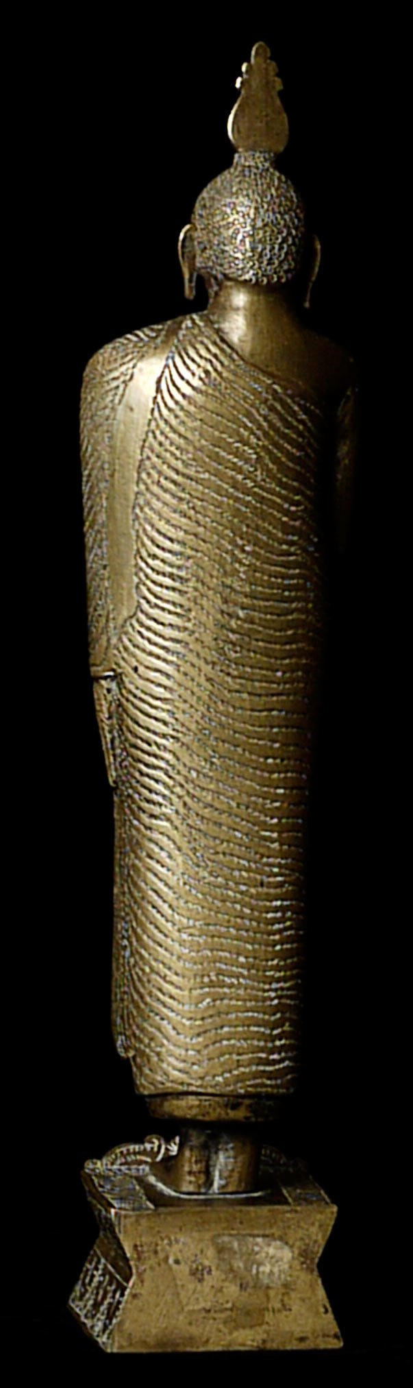 18thC Sri Lankan Buddha stands 12" tall, with a base measuring 2.5" x 2.25". Serene and intricate!Large, beautiful example.