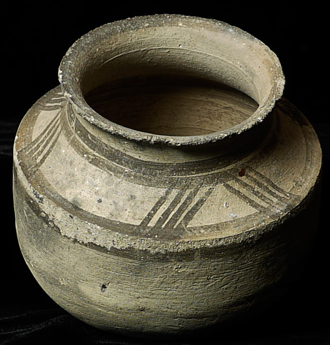 Very early ceramic vessel- Chinese?, 3.75" tall, top diameter of 3"