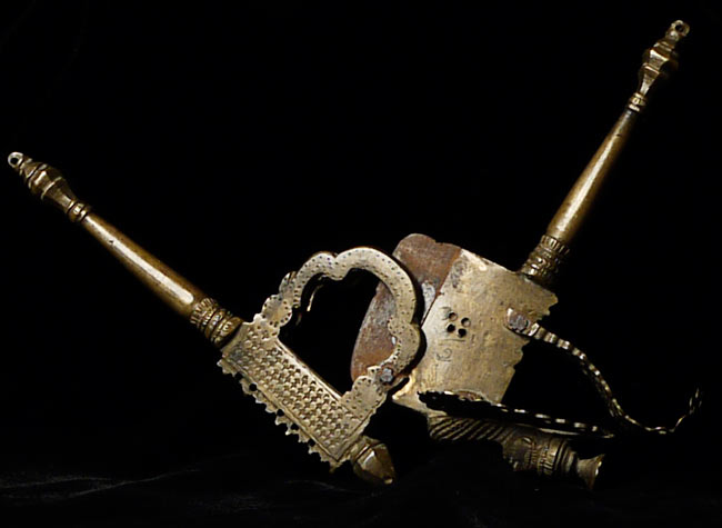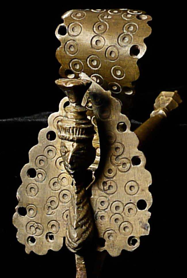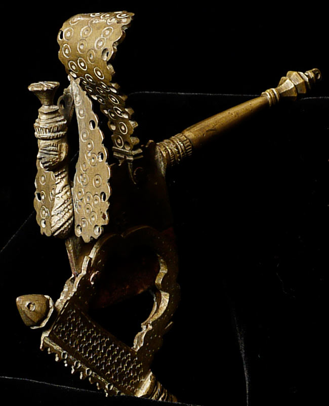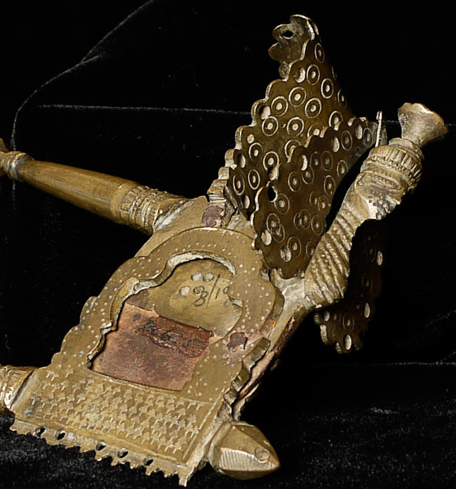 Betel nut cracker is 6" long. Very ornate. Has an old museum or cellection number written on the blade.