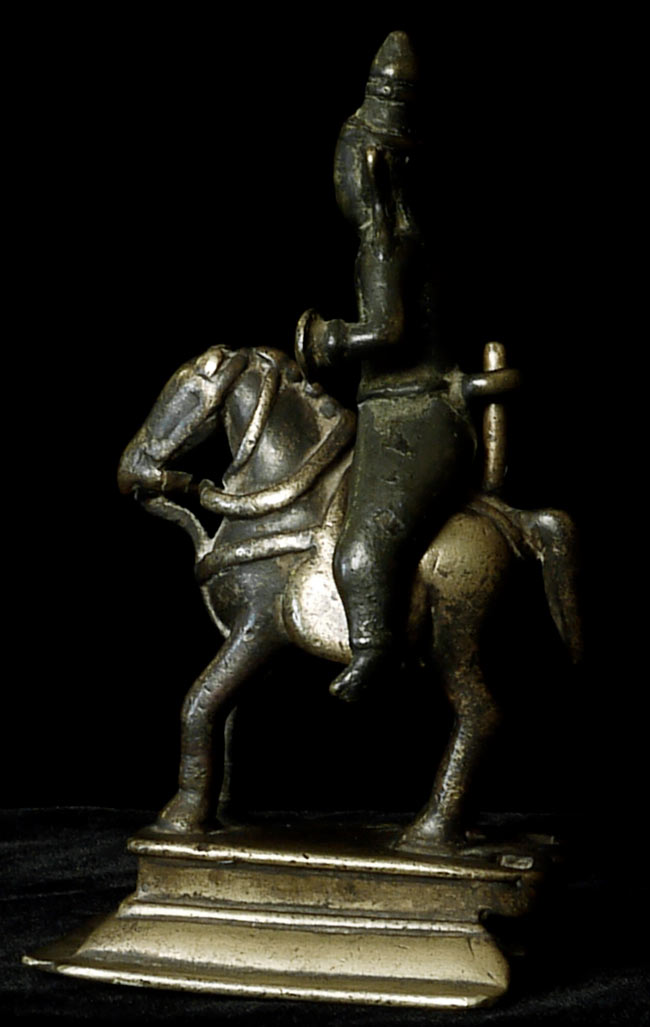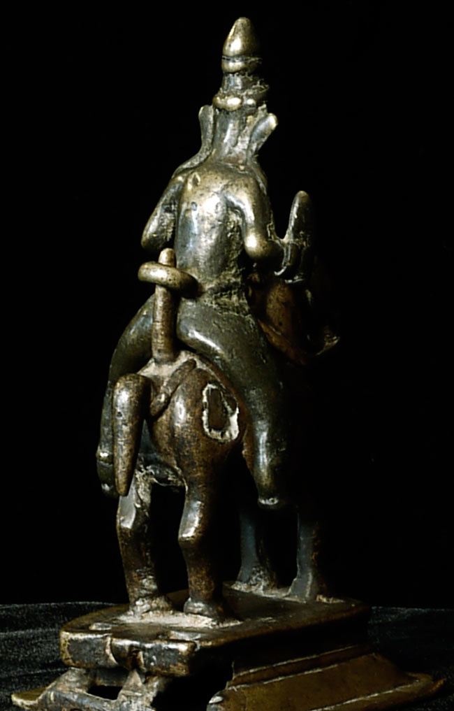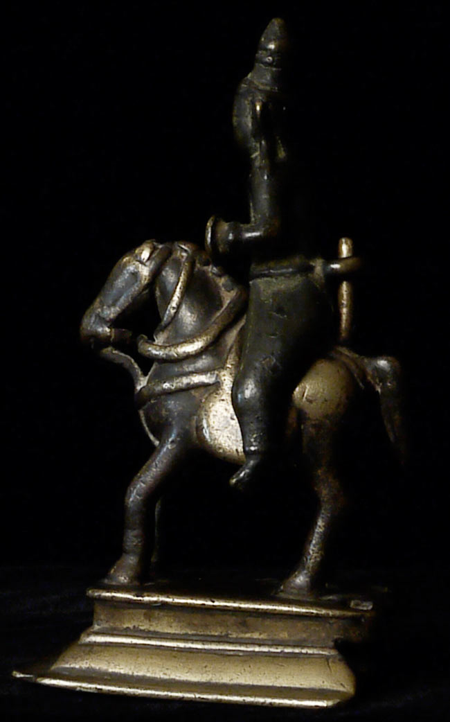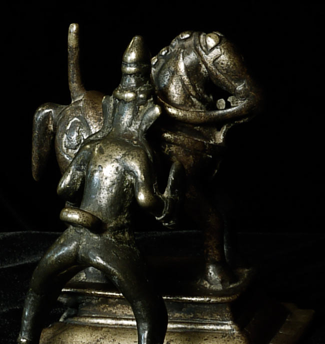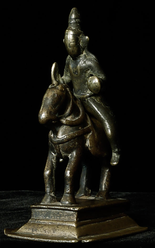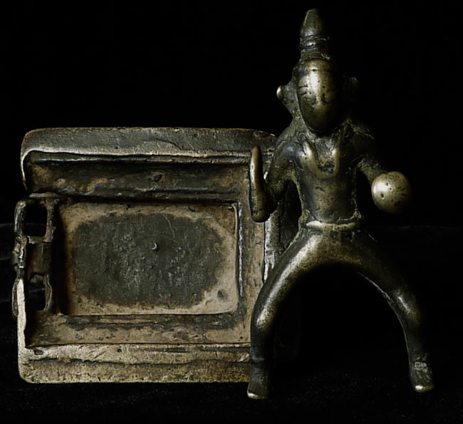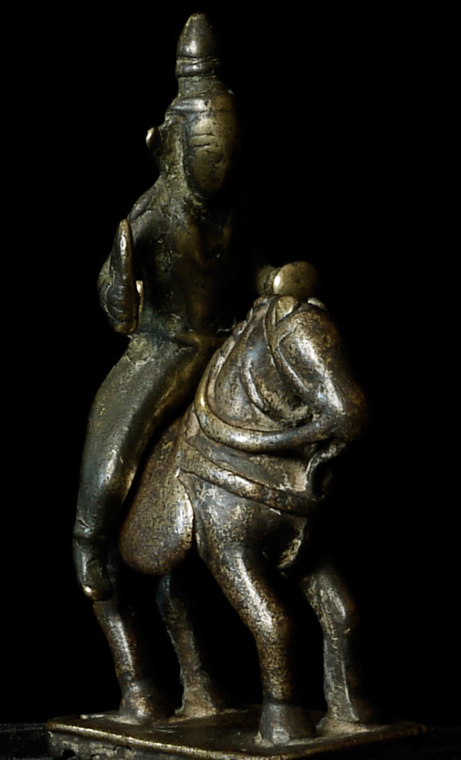 Bronze Hindu figure. Significant ritual wear. 4.75" tall, base measures 2.25" x 2.5"
