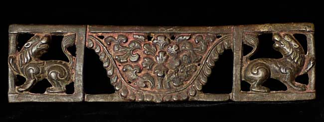 Very early bronze plate from the front of the base of a Buddha or Bodhisattva. 6.75" wide, 1.75" tall