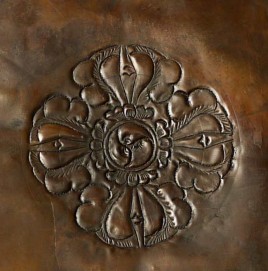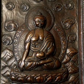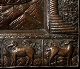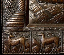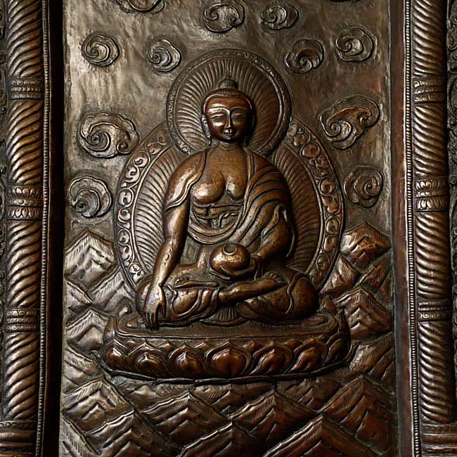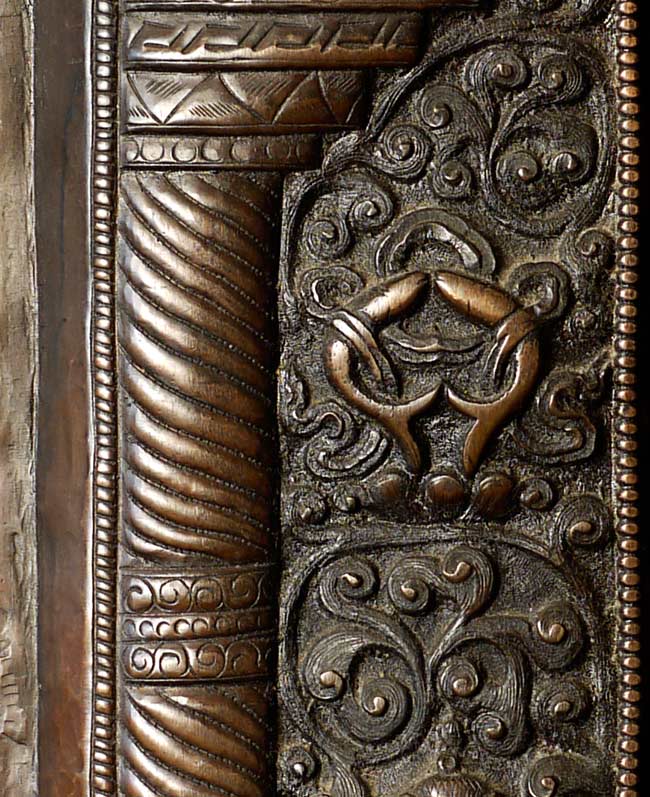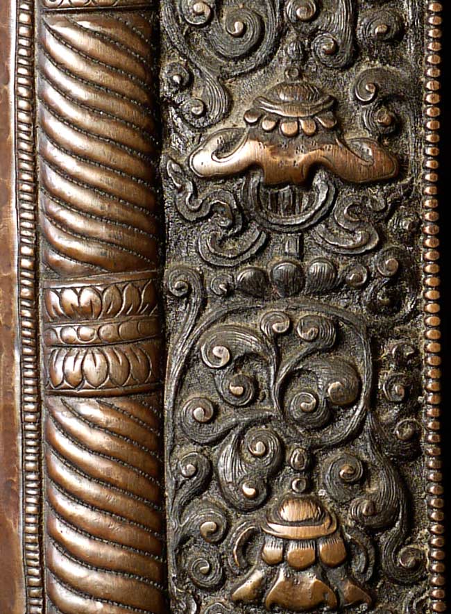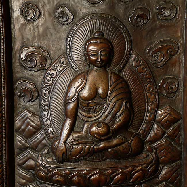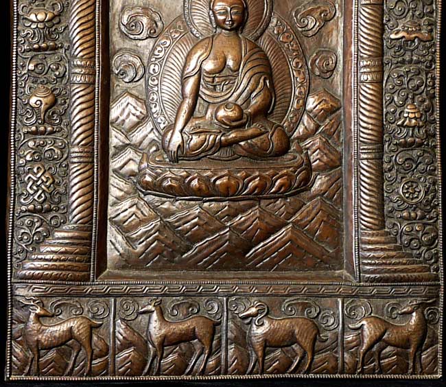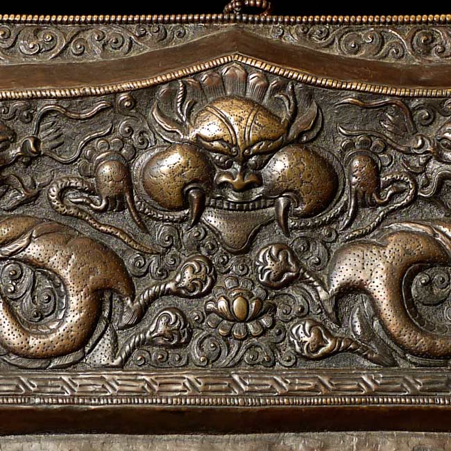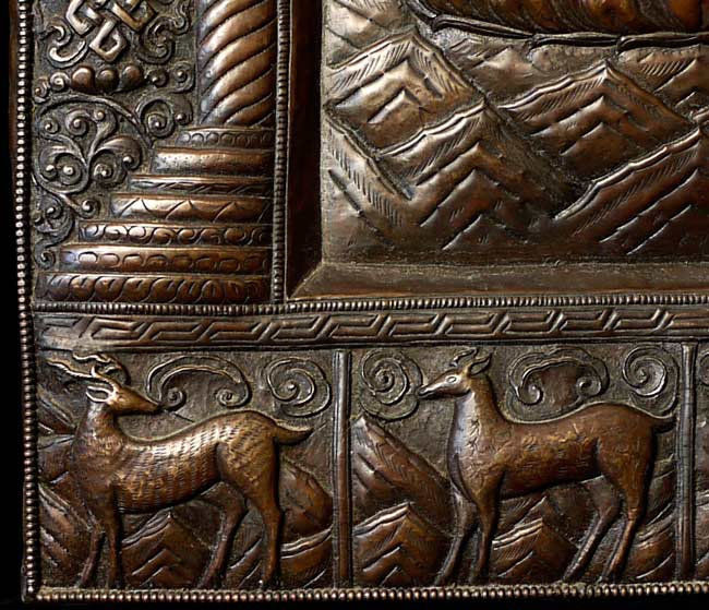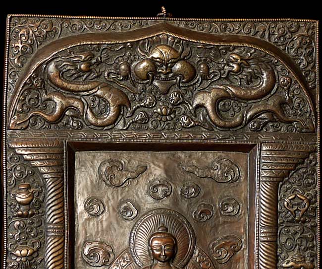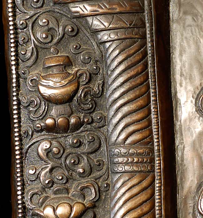 Vintage large, fine Bhutanese Hammered Copper plaque is 20" x 12.5", with a depth of 1/2". Beautiful! Came out of Bhutan with a gentleman married to a Bhutanese woman who still has family there.