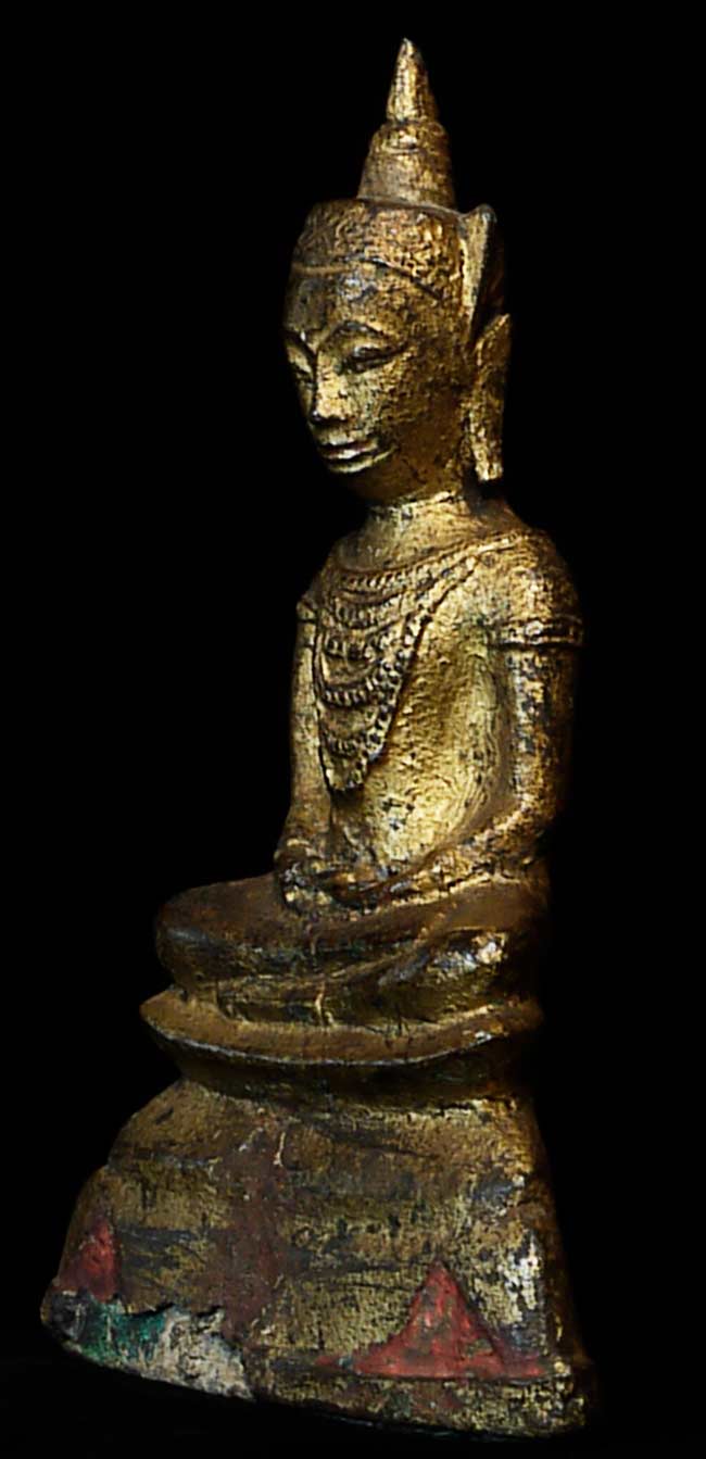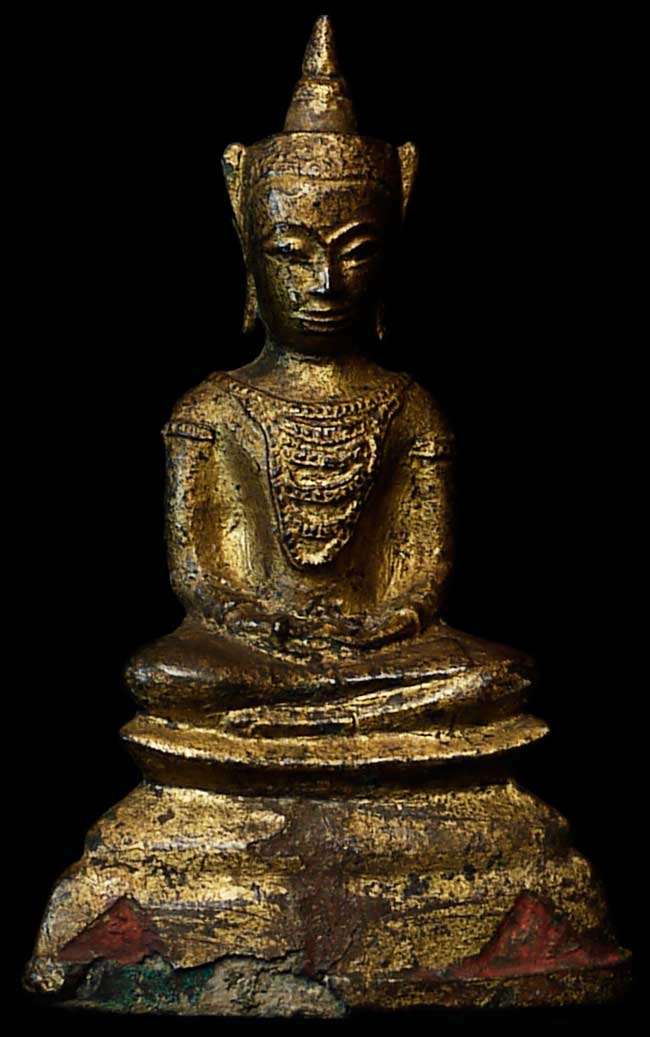16/17thC Thai Ayuthaya Bronze Buddha- 7" tall, base measures 4.25" x 1.25"
