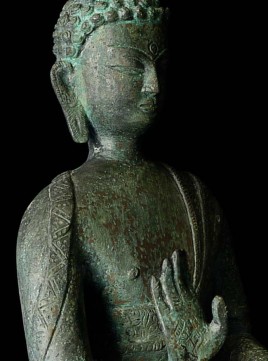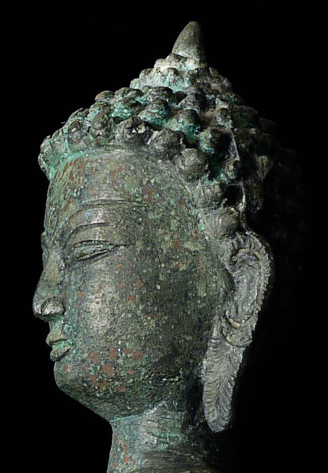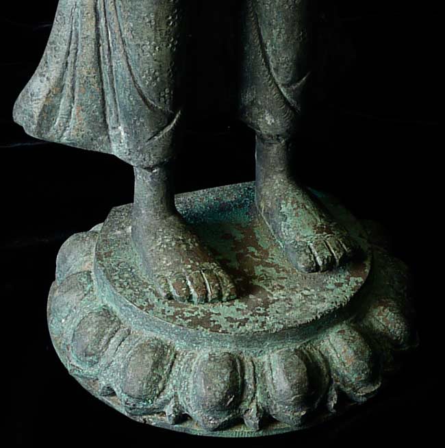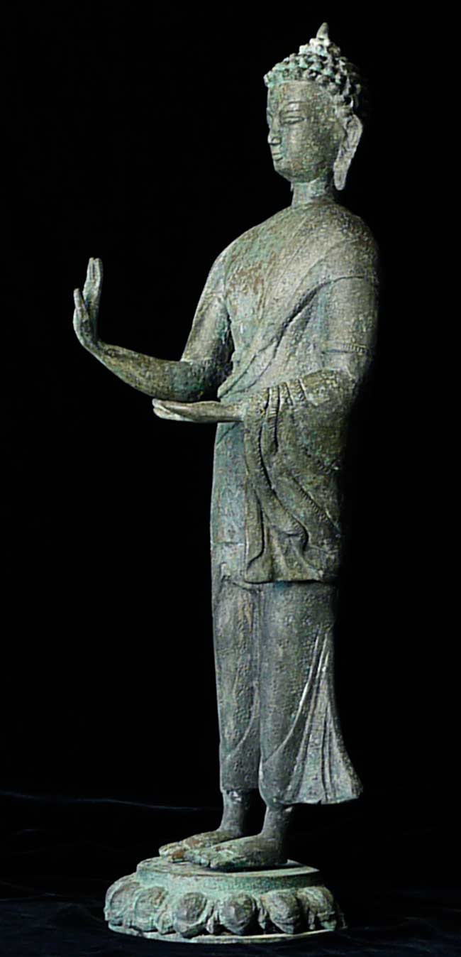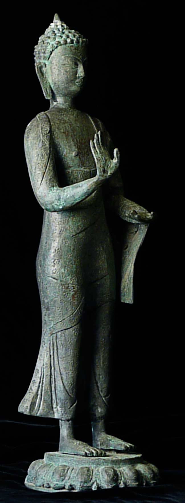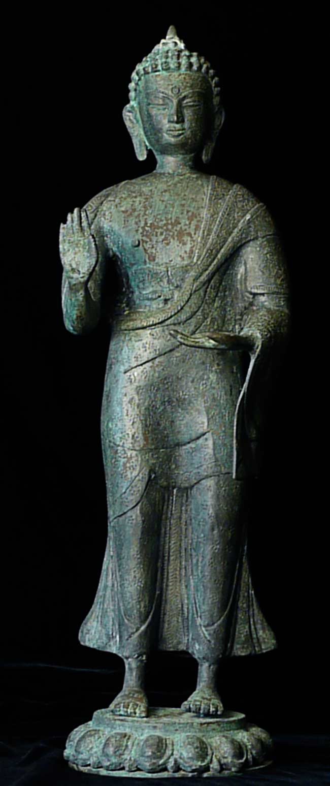 Vintage/old Bronze Nepalese buddha stands an impressive 22" tall. Base is approximately 6.6" wide, 6" deep.