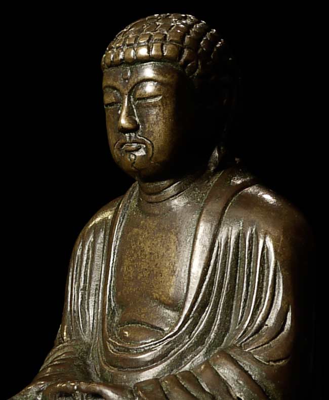 Lovely, serene Korean Buddha sits approximately 3.5" tall. 3.25" x 2.5" at base, which is signed.