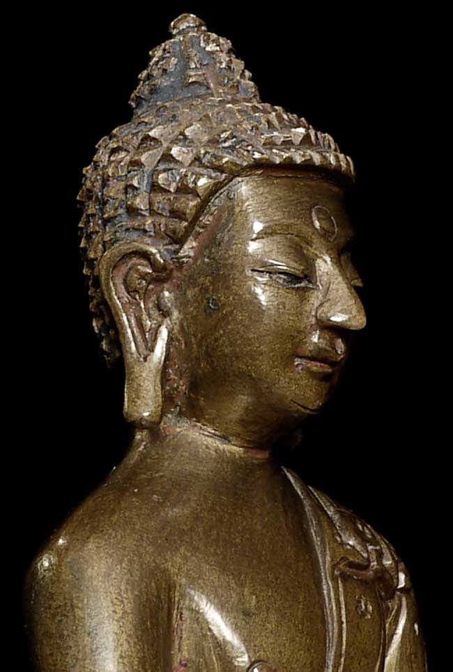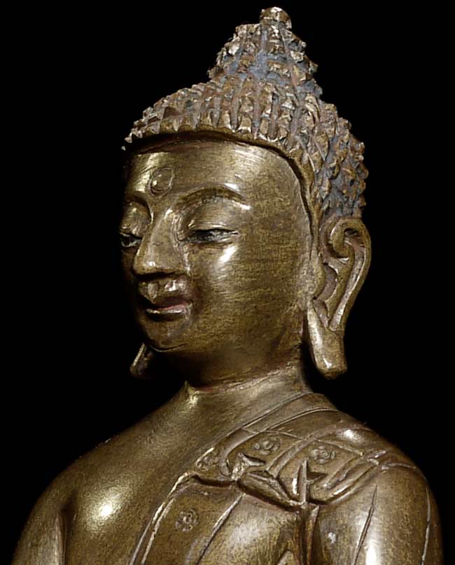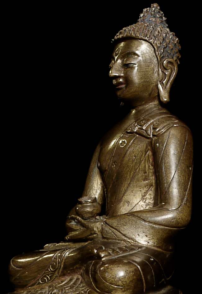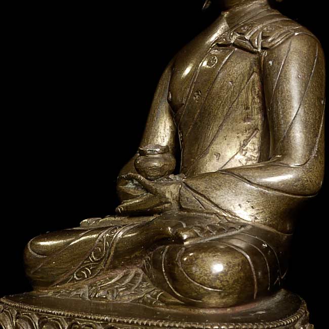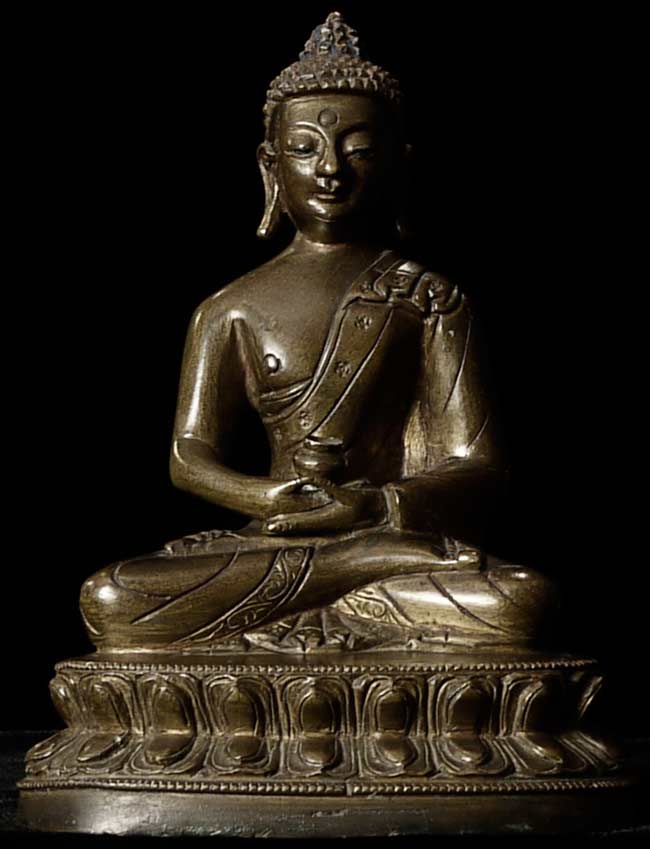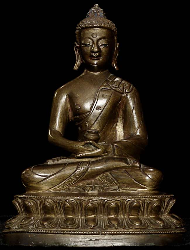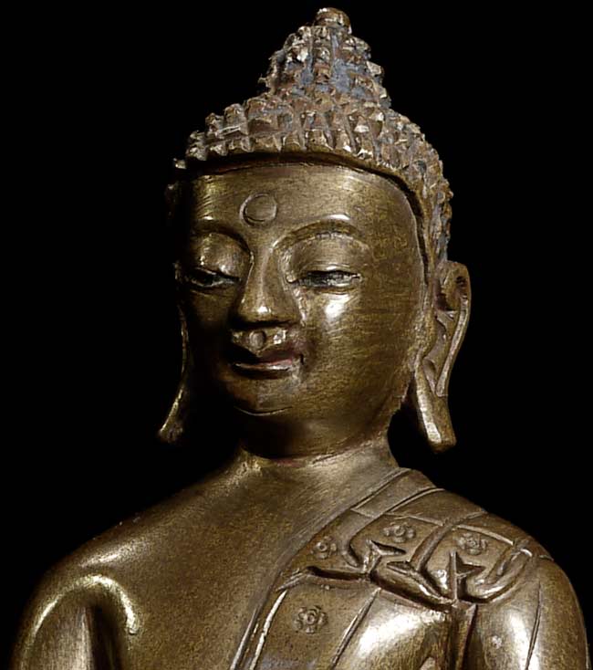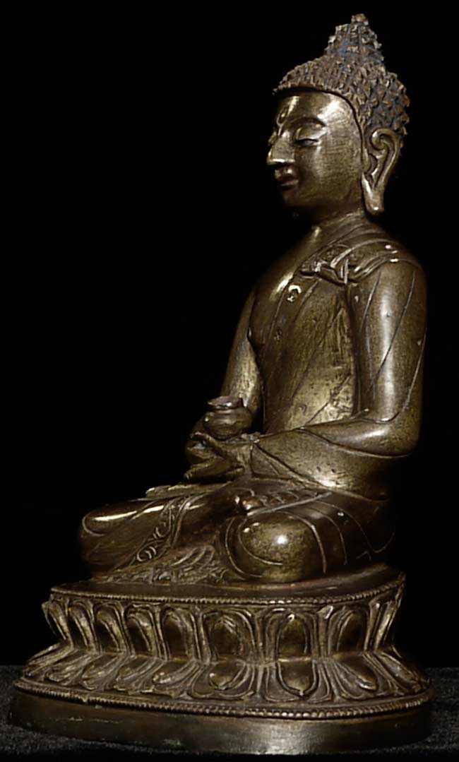 Superb 19thC Tibetan bronze Buddha. 4.75" tall, Has great presence! Base is approximately 3.5" x 2.5"