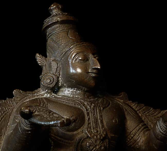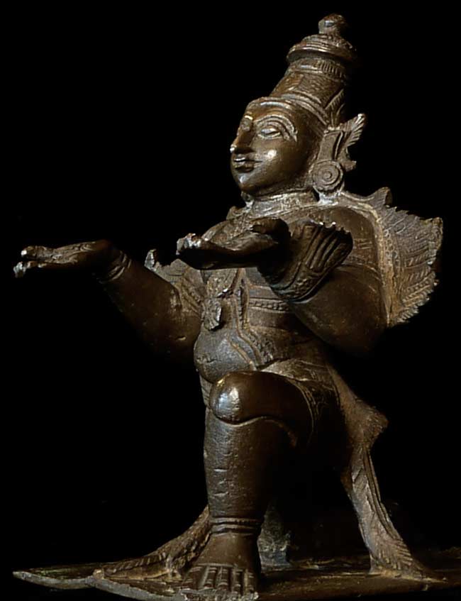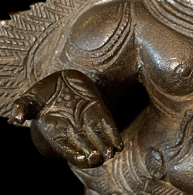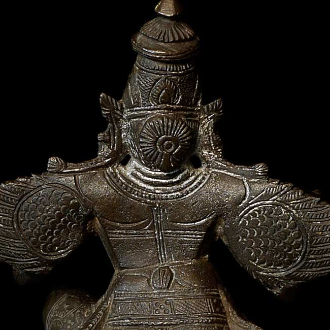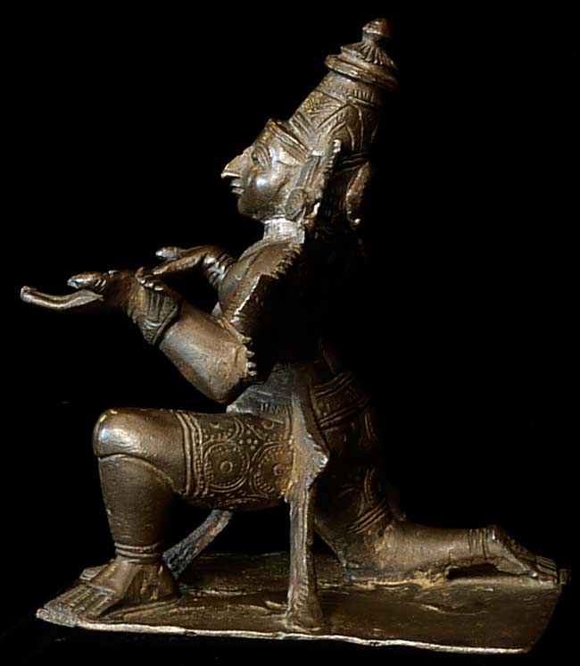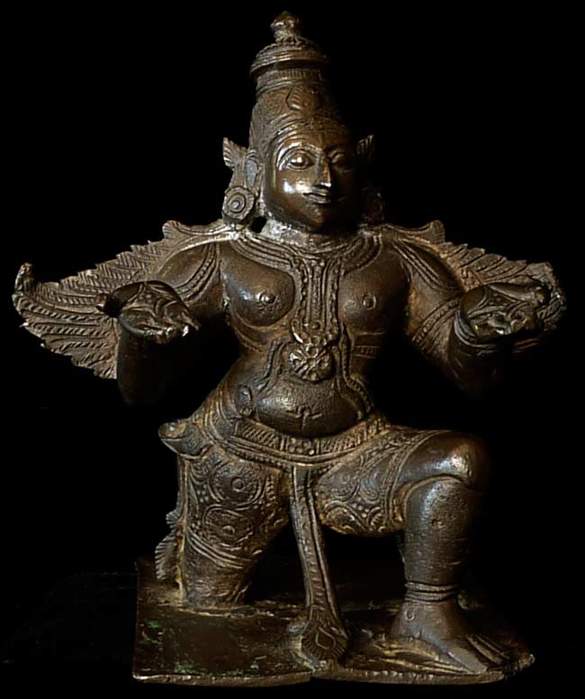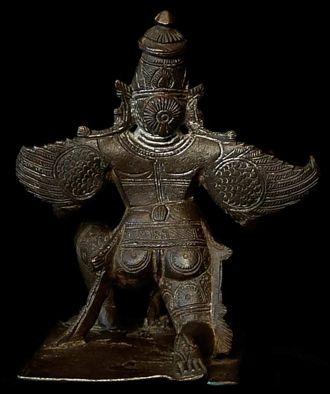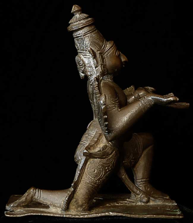Very heavy Bronze kneeling Garuda. Tip of one wing is missing. 4.75" tall, base is approximately 4" x 3". Great face.