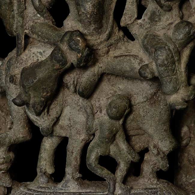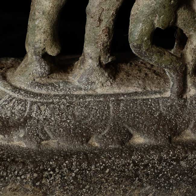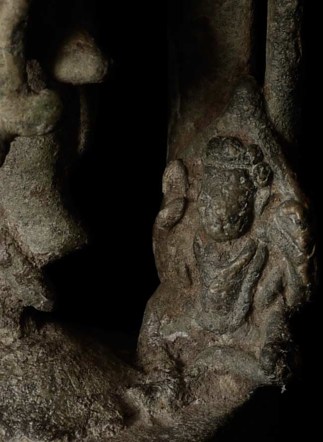 Very rare and early Pala era bronze. Has 1,000 years of devotion and ritual use-losses and wear as seen in the photos. Attached to a custom patinated steel base. Much more animated and lively than the majority of this type. Wonderful ancient patina. Avery nice size- Stele is 7 1/8" high, base is 2.75" x 5"