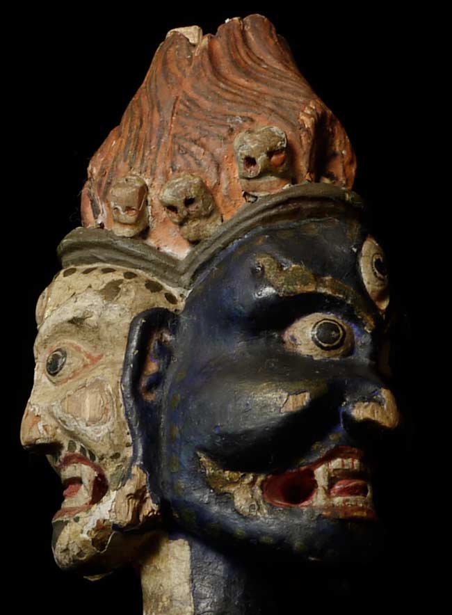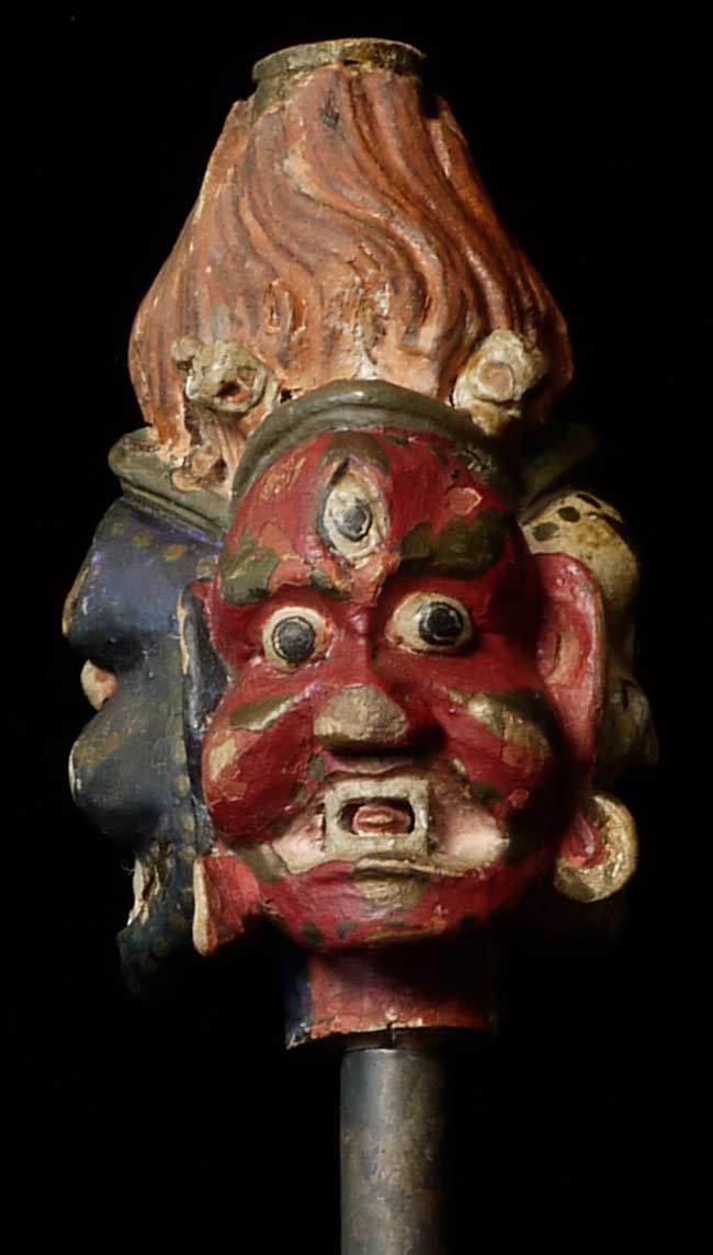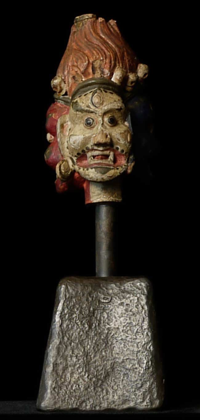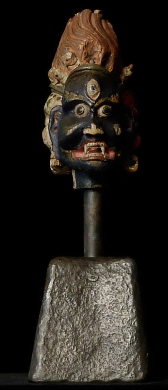 Uncommon Mongolian 3 faces head on a custom base. Sits 4.5" on base for a total height of 9.25". Base is approximately 3" square on bottom.Powerful, animated.