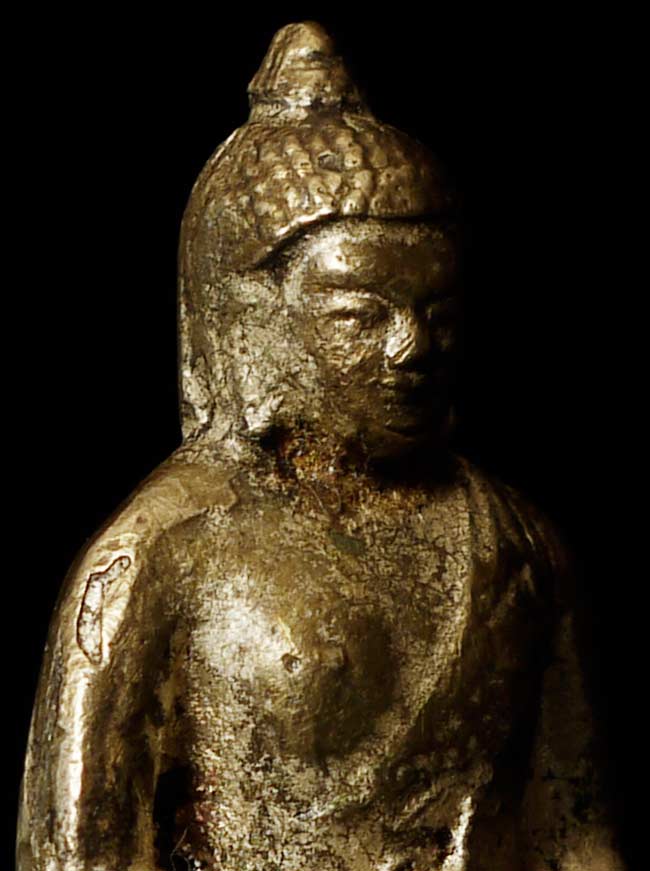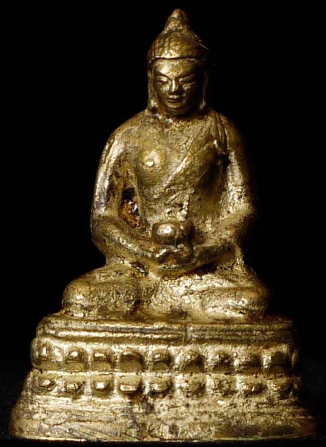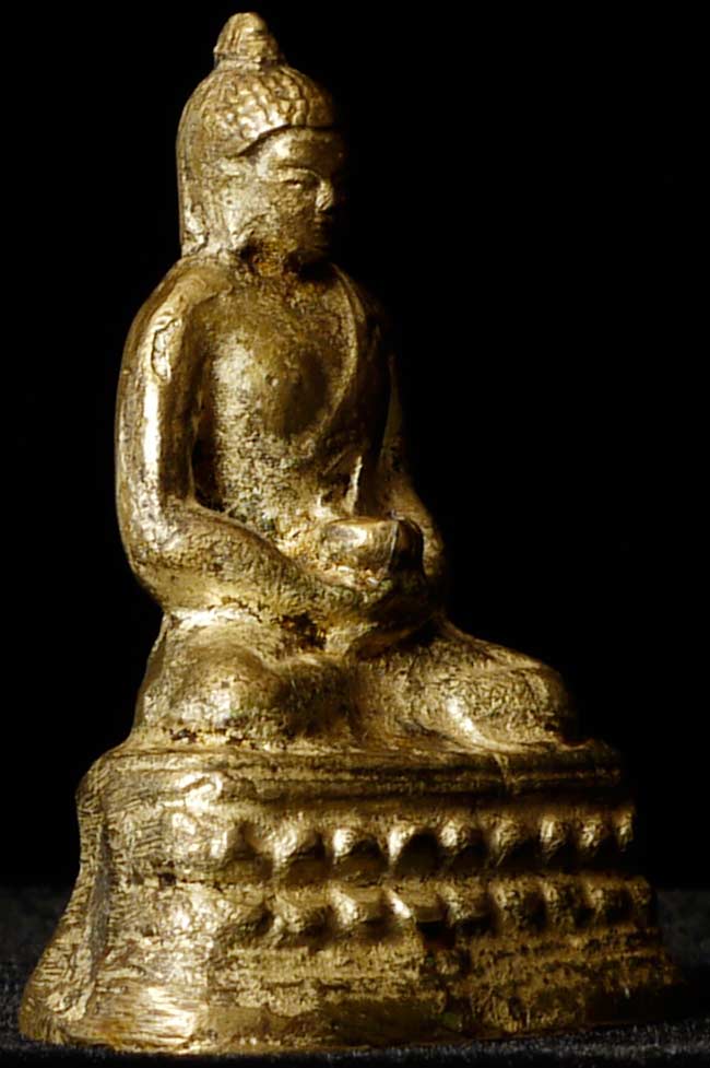 Old Mongolian or Tibetan Bronze Seated Buddha. Sits 2" tall, base is approximately 1.5" x 1"