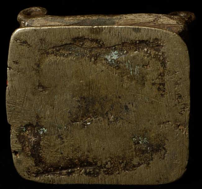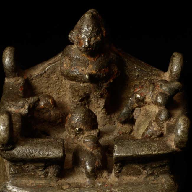 Hindu shrine -- the whole family: Ganesh, Vishnu, Nandi, Garuda, etc. 19th Century. 1.5" at highest point. 2 1/8" x 2.25"