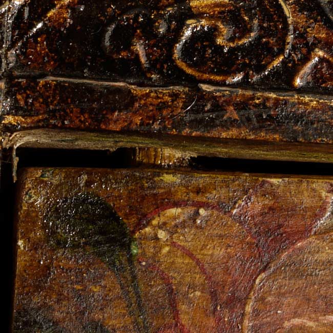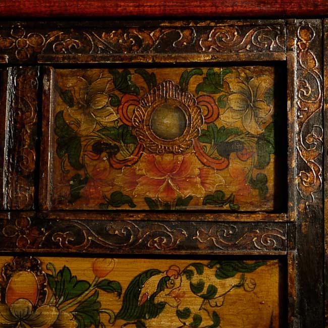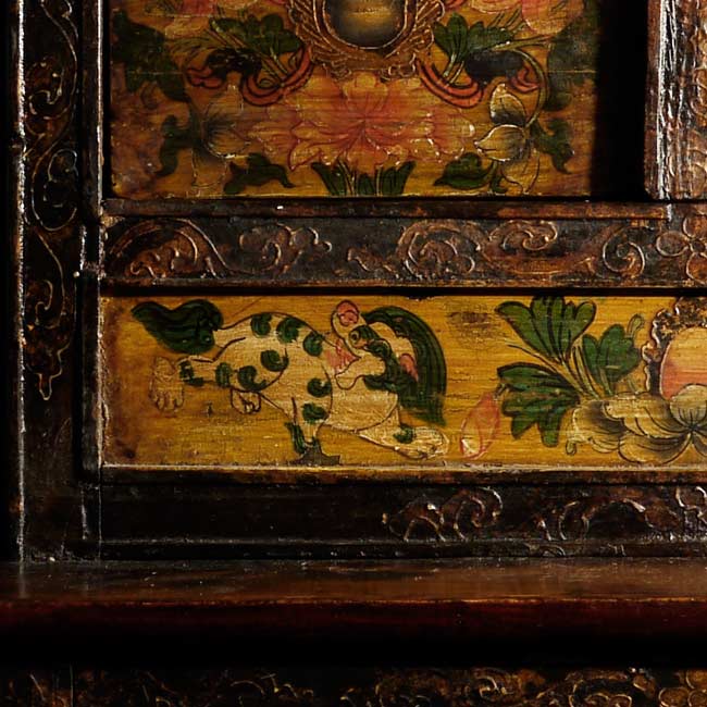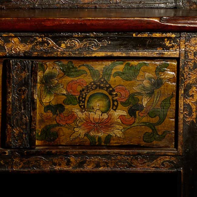 Antique Tibetan Cabinet. Perfect small size for an altar. Appears to be original paint. 21" tall, 9.25" deep, 19.25" wide