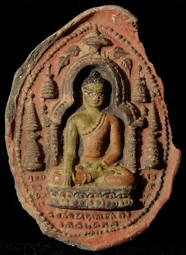 Early Tibetan tablet with writing. Quite old, though I don't know how to date with precision. Polychrome later, though done long ago. approximately 3.25" tall, 2 3/8" wide, .75" deep
