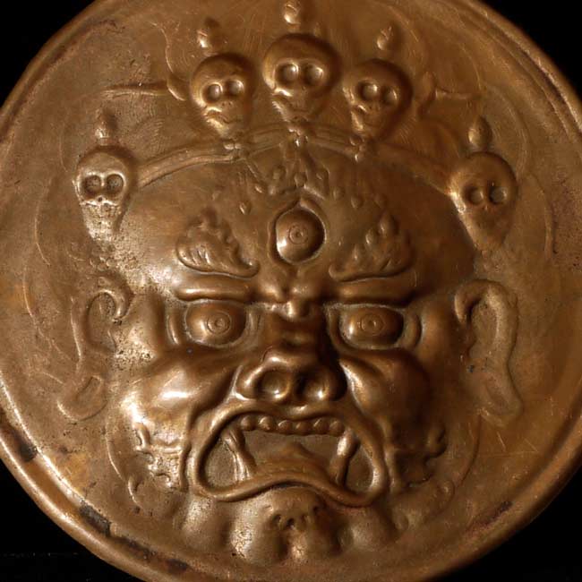 Vintage/Old Copper Repousse Protective Deity. Diameter measures 4.75".