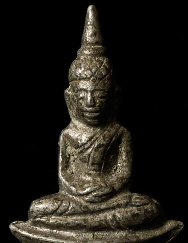 Very sweet Cambodian silver/bronze Buddha. 2 1/8" tall, base is .75" wide, 3/8" deep.