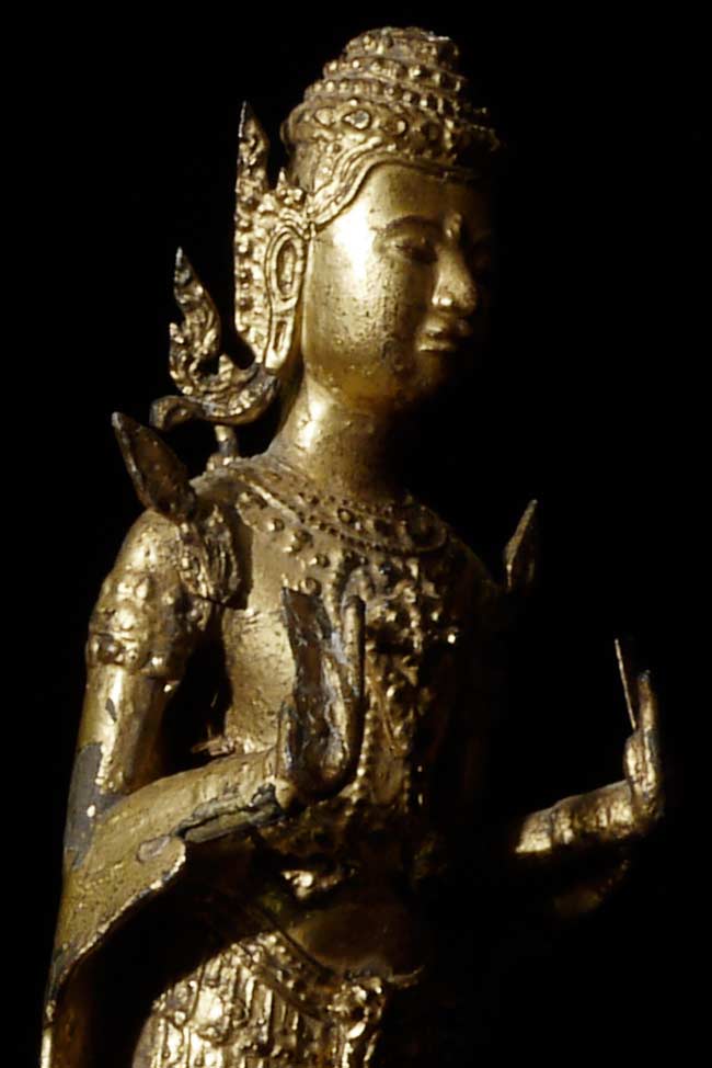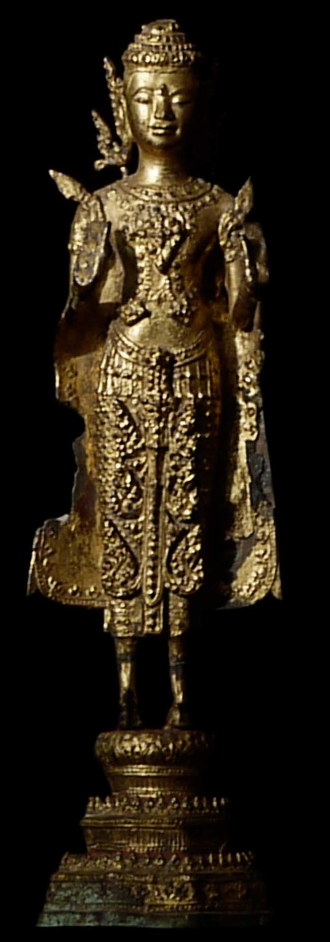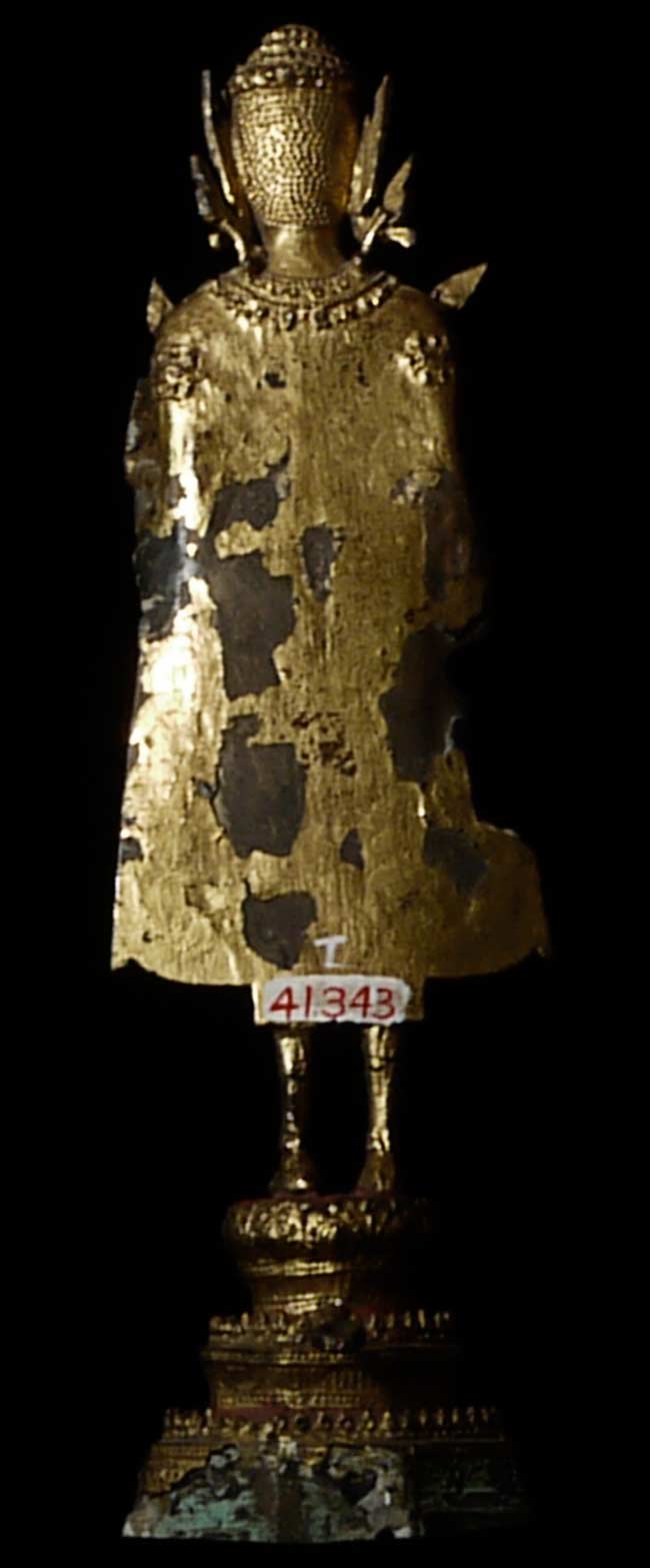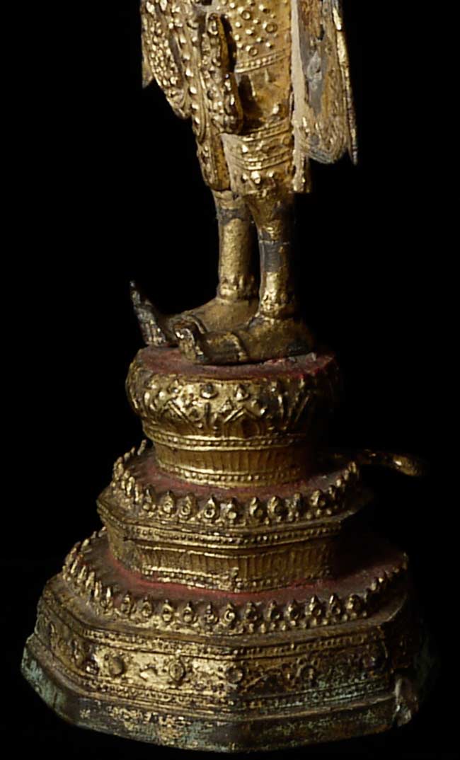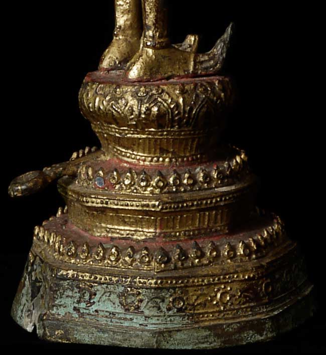 Thai Rattanakosin Buddha. Some losses as seen in the photos. Serene countenance. 11.5" tall, base diameter is 3"