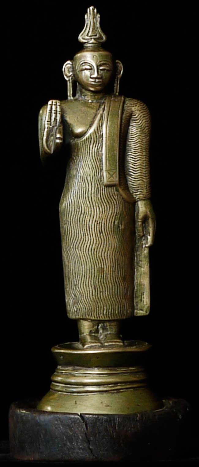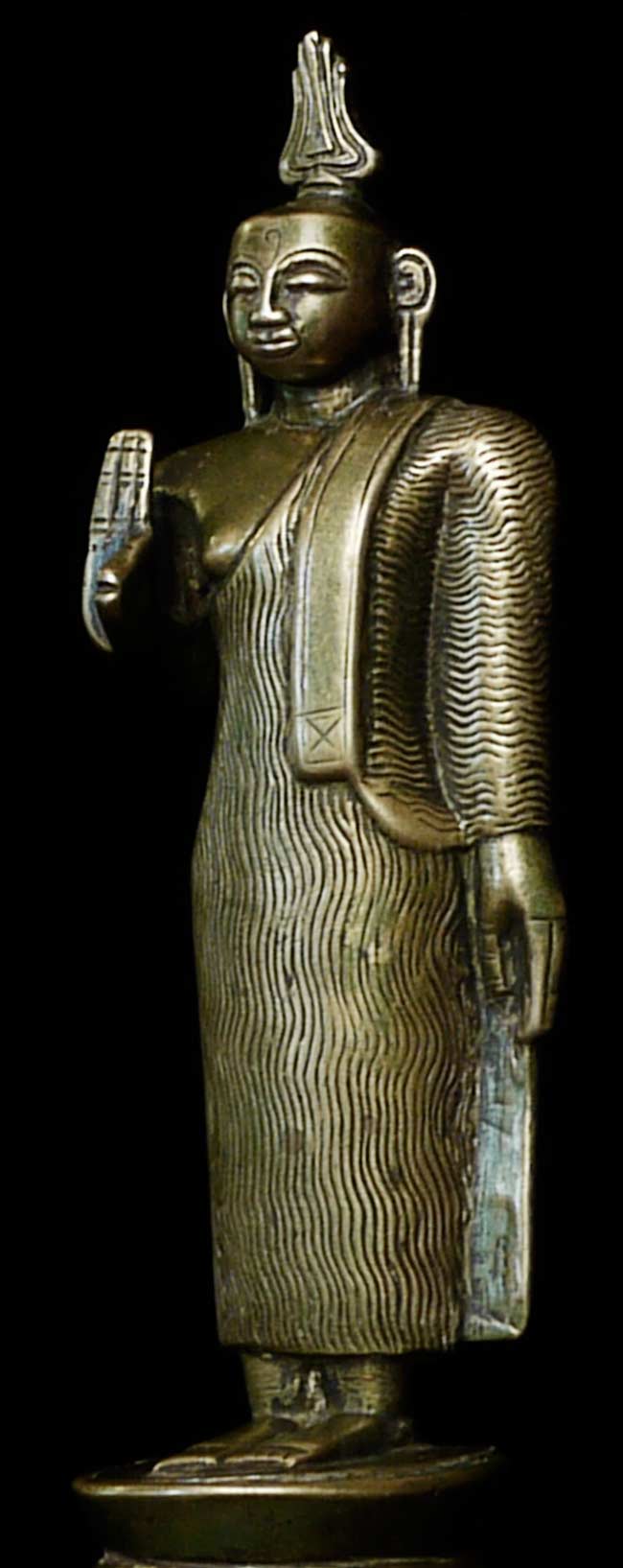 7.5" Fine Sri Lankan Buddha. On custom base (to correct leaning), height is 8.5. Diameter of base 3.75"