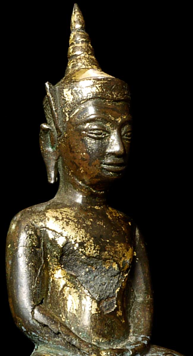 Nice 16thC Thai Bronxe Buddha-has a mirror smooth surface. 6 7/8" tall, 3.5" x 1.75"
