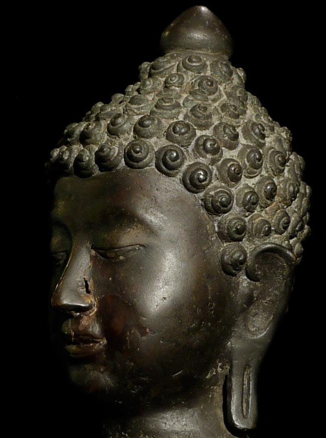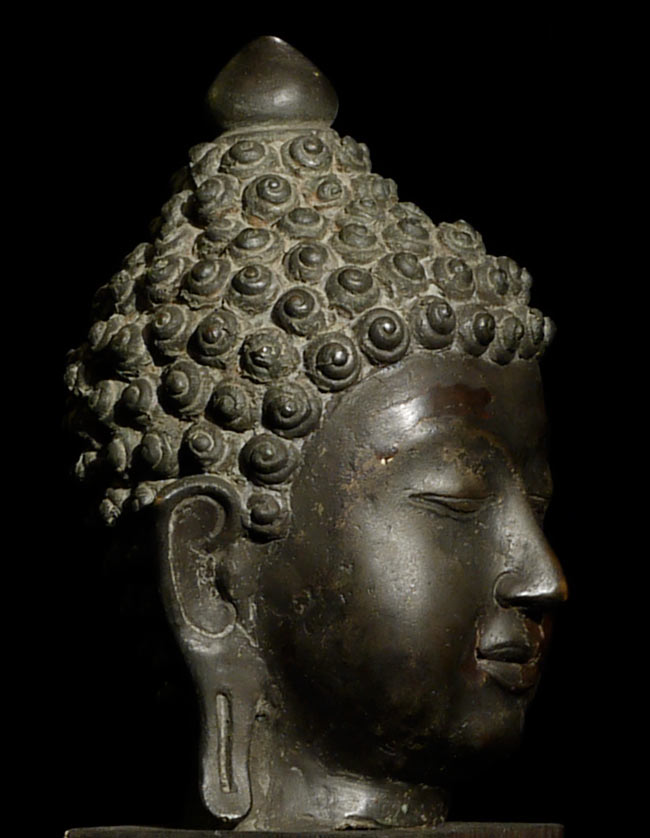 Thai Bronze decorative head is 7.5" on a custom 4" base for a total height of 11.5".