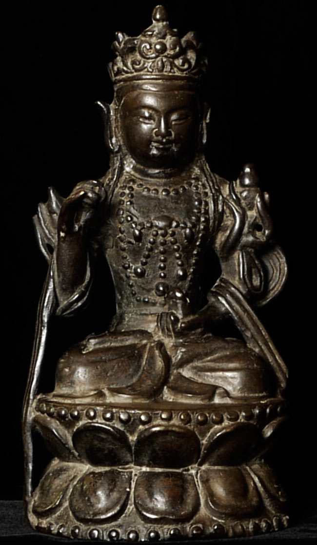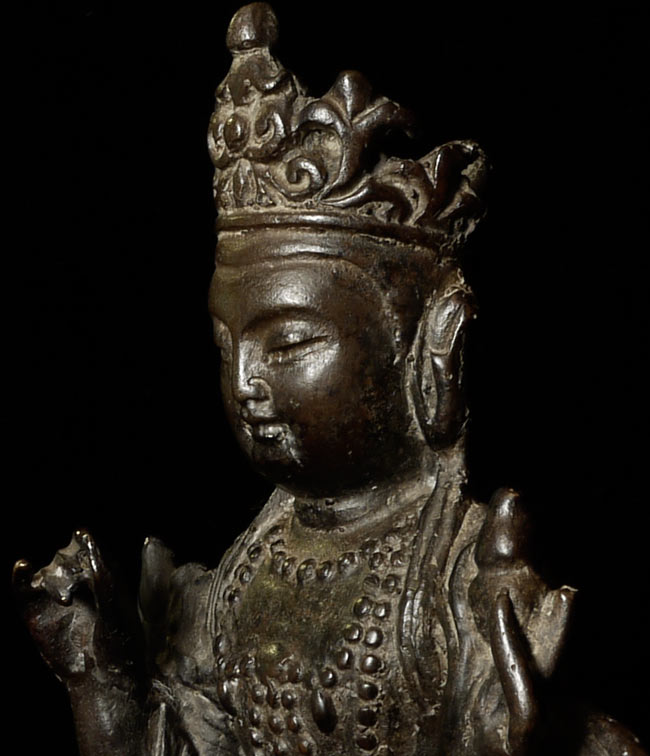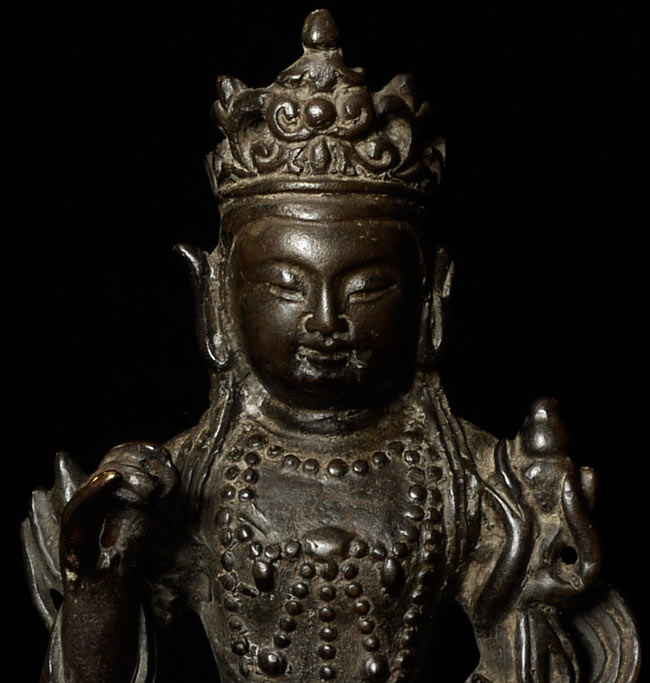 Delightful Ming Bronze Bodhisattva. Nice thick casting. Minor losses, as seen in the photos. 7.25" tall, base measures 4" x 3.75"