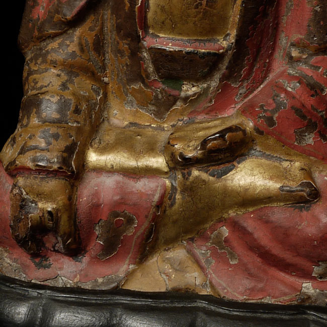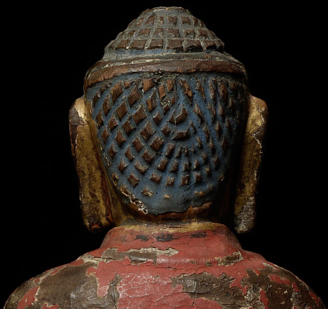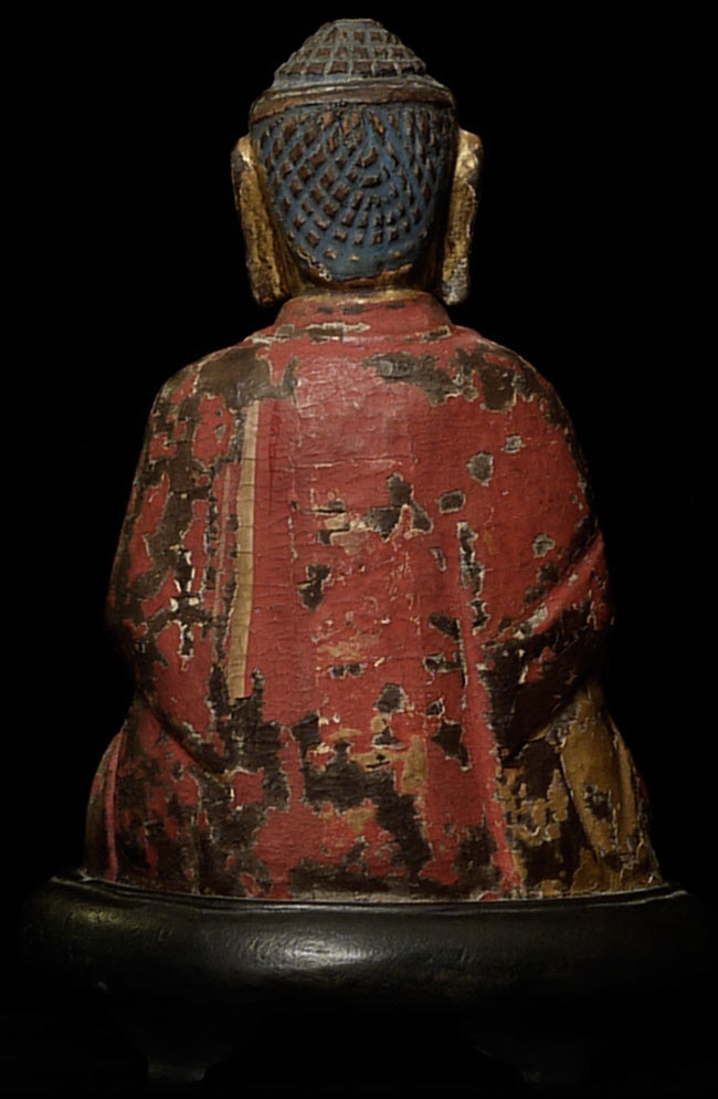 Nice 17/18thC Chinese Buddha- wear as shown in the photos. Still readiates joy and equanimity. 7.5" tall, base is 5" x 3.25".