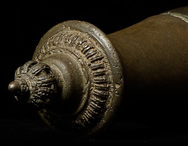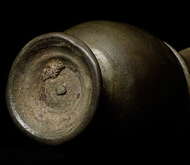 Outstanding Khmer Lime Pot. This is a unique pot. The top has a small ball inside that rattles when you shake it. Does not open. Not sure if the top and bottom are original to each other. 4.75" tall, diameter of 1 1/8"