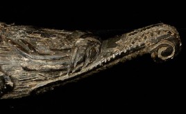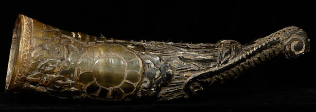 Tibetan carved Horn. Great folk art!. 6.5" long, 2.25" wide at widest point.