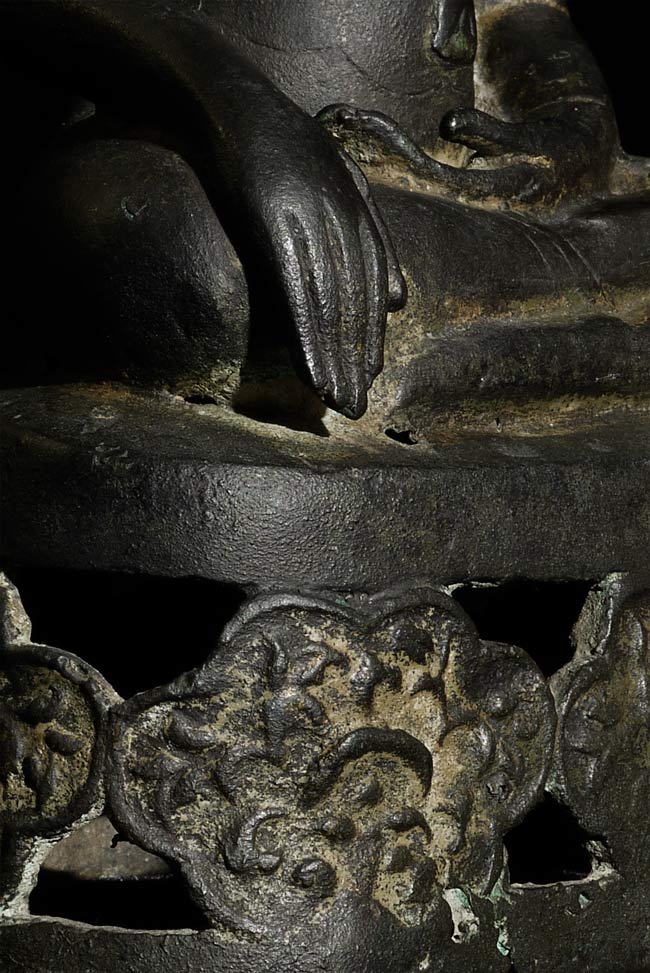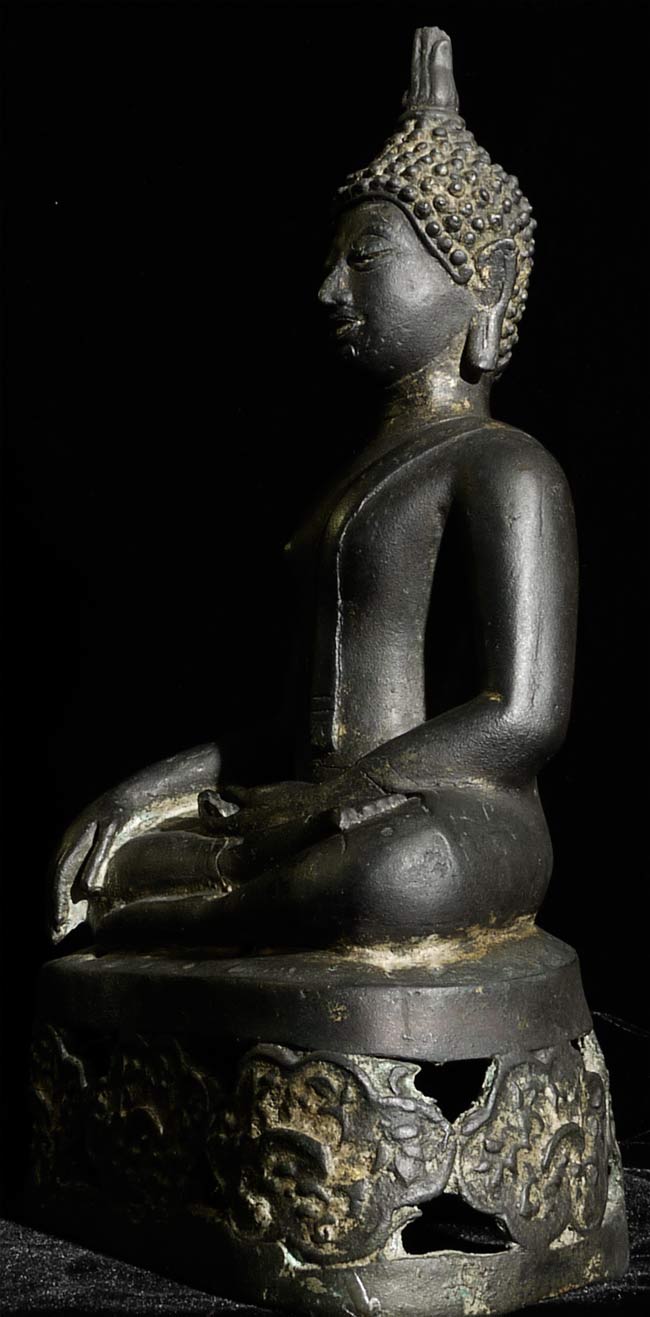 Beautiful Northern Thai Bronze Buddha. Very rare base. From a German collector. 10 1/8" tall, 5.75" x 4" at base